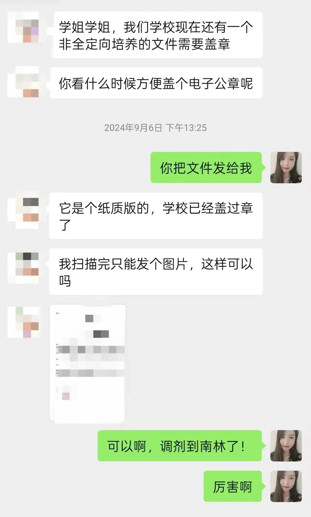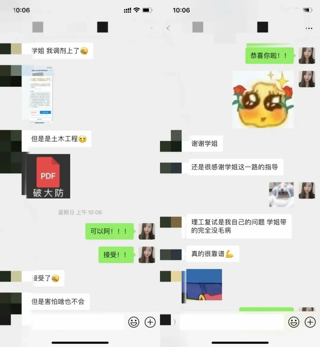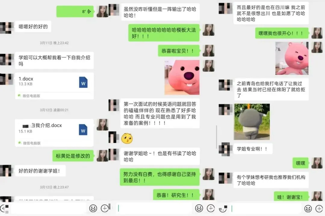 木子学姐说:这位同学一志愿报考的是浙江大学风景园林,初试分数290+,从查到分数后就明确自己要走调剂这条路了。我们单独建立了调剂服务群,调剂过程中的疑问,包括如何回复导师邮件,我们都给予了相应的解答,同时每日分享调剂信息。调剂系统开放后收到了安徽科技学院、仲恺农业工程学院、西北农林科技大学、沈阳农业大学、河南农业大学的复试通知,最终选择了仲恺。整个调剂服务从2月26日开始到4月12日拟录取结束,画上圆满句号啦!木子学姐说:调剂系统开放后,收到了浙江理工大学、南京工程学院的复试通知,因为我一直研究四川地区的高校,所以在问我浙江理工复试内容的时候我也只是靠经验做了大致的判断。但最后因为种种原因,在参加浙理的复试前接受了南京工程学院的调剂。木子学姐说:调剂系统开放后,一轮填写调剂系统就收到沈阳建筑大学、西南民族大学、北京建筑大学的复试通知,最终选择了北建大~木子学姐说:没出线之前就已经开始着手准备复试了,我也帮忙修改了简历、自我介绍,在接收复试通知前也进行了模拟面试,所以调剂成功也是顺理成章,水到渠成的事了。这位学员一志愿报考成都理工大学风景园林专业。去年10月底才找到我,距离考试仅两个月,紧急补了带背班、刷题班和冲刺班。最终初试考了300+,成功进入成理复试。复试时,她跟着我学习复试班课程,我帮她一对一修改简历、自我介绍和作品集 ,但很可惜复试被刷。不过她迅速调整状态,投入调剂流程,学习调剂课。调剂系统开放后,她收到青岛农业大学、绵阳师范学院的复试通知。之前模拟面试的时候,她口语问答磕磕巴巴,我教了她万能模板答题方法,这次调剂复试派上用场,最终成功调剂上岸。