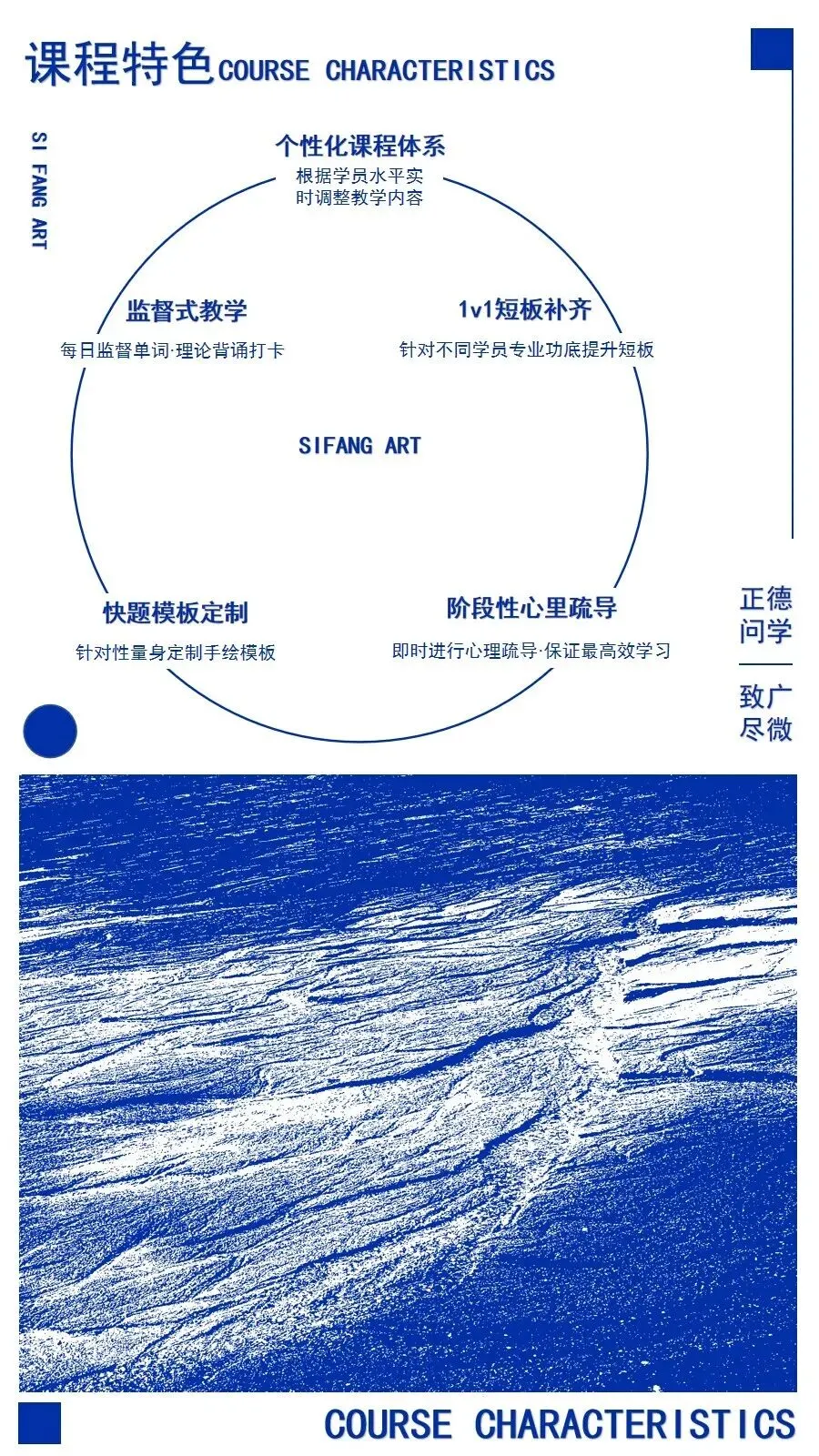 任课教师经过多年教学经验总结,制定出一套针对美院学生特点的教学方案体系,短时高效的提高学员各专业及公共课能力。
