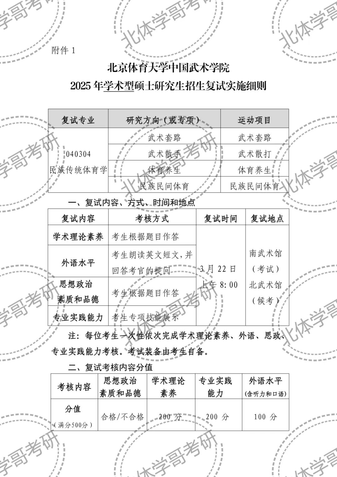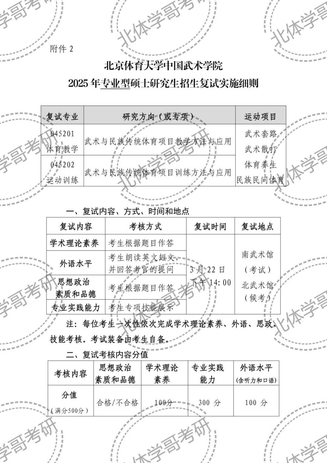 本文介绍:北京体育大学中国武术学院2025年硕士研究生招生复试实施细则。