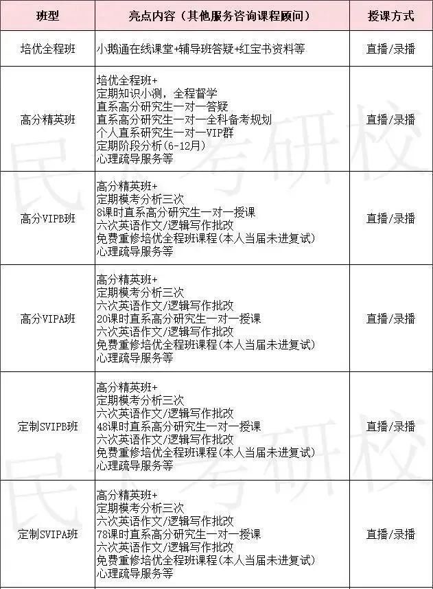 了解考研班型(文末联系大民咨询)
