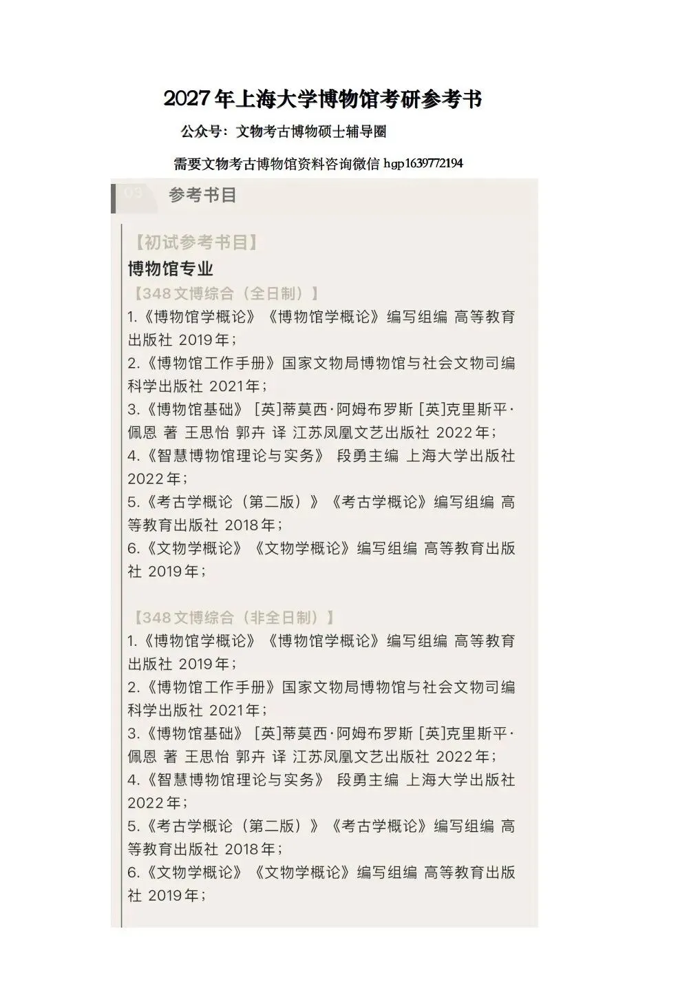 >2027年上海大学博物馆考研参考书