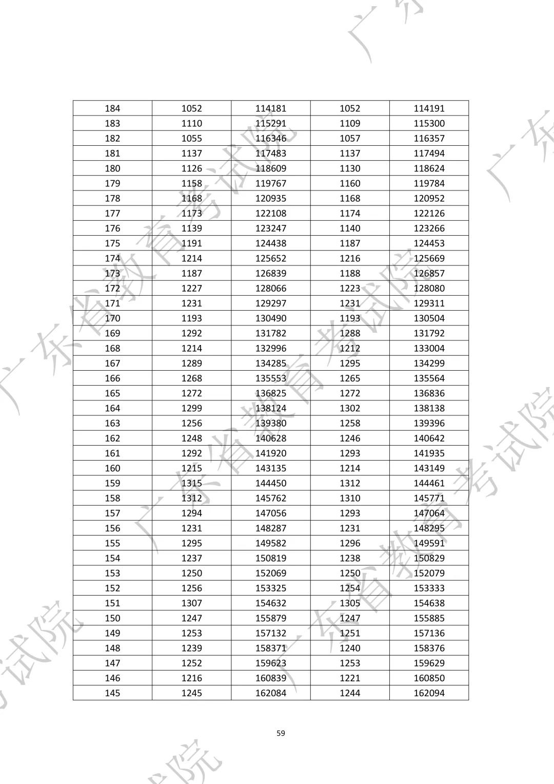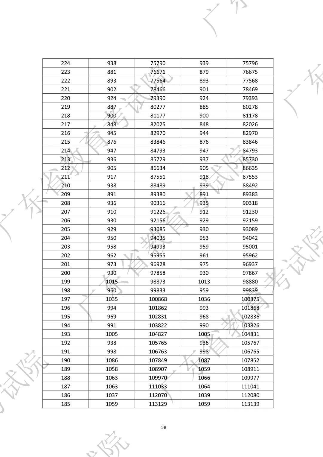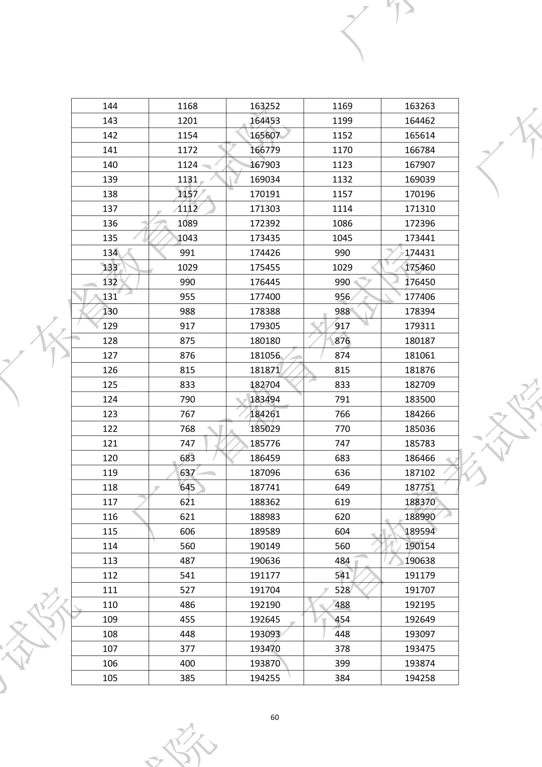 累计人数:指的是这个分数段上的分数人数累加。比如264分累计人数为42354人,表明264分及以上的人数共有42354人。