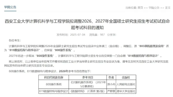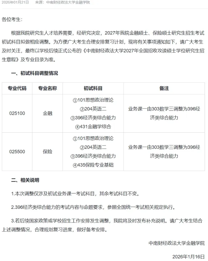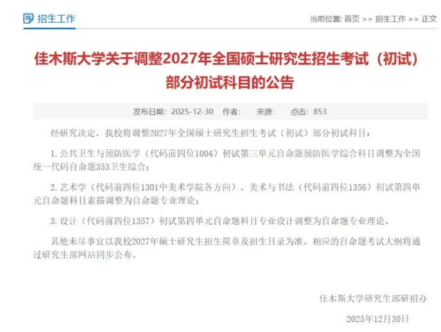 我给大家统计了27考研已公布科目调整的院校,最新汇总,快来看看有没有你的院校。