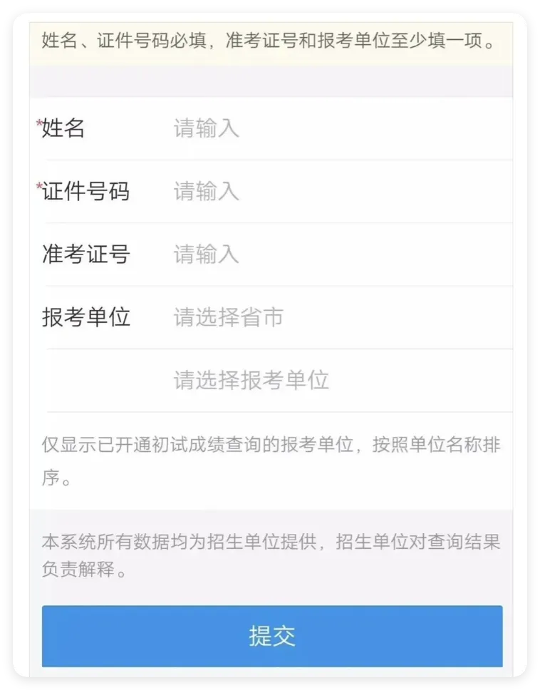 具体操作是:百度搜索 “XX 大学研究生院” 或 “XX 大学研究生招生网”,进入官网后找 “初试成绩查询” 窗口 —— 不同学校的入口位置不一样,有的在 “招生动态” 里,有的在 “通知公告” 里,耐心找一找。找到后输入报名号、身份证号和验证码,就能查到成绩。