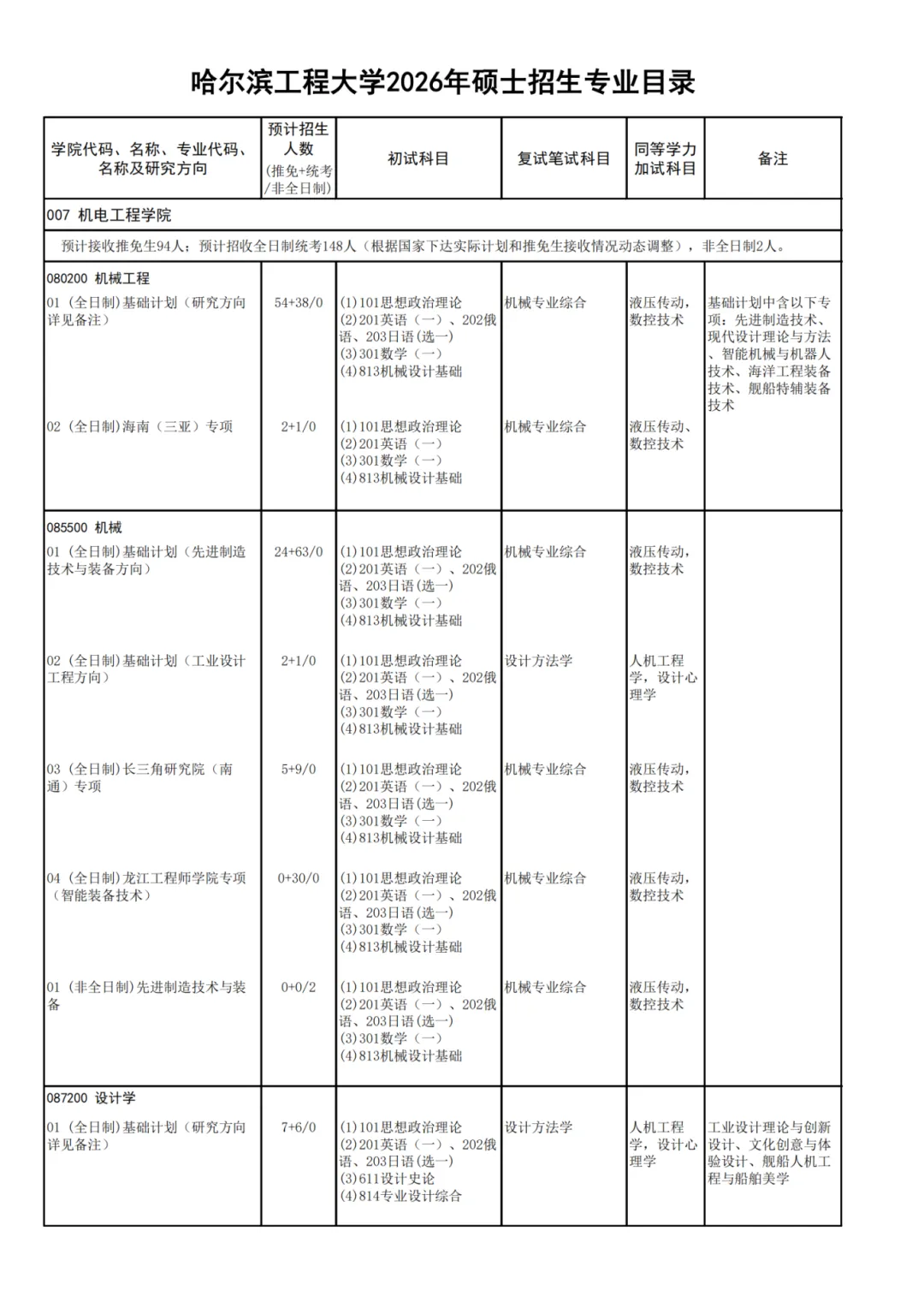 学院现有“机械设计制造及其自动化”、“智能制造工程”、“工业设计”、“机械设计制造及其自动化(中外联合办学)”4个招生本科专业;具有“机械工程”、“设计学”2个一级学科硕士学位授权点,“机械”硕士专业学位授权点;具有“机械工程”一级学科博士学位授权点(包含“机械设计及理论”、“机械电子工程”、“机械制造及其自动化”、“车辆工程”4个二级学科),“机械”博士专业学位授权点;拥有“机械工程”博士后科研流动站。其中,“机械设计制造及其自动化”专业为国家一流建设专业、黑龙江省一流建设专业、黑龙江省重点专业并通过工程教育认证,“工业设计”专业为国家一流建设专业、黑龙江省、工业和信息化部重点本科专业,“机械工程”一级学科为“十三五”国家国防特色学科、黑龙江省首批重点一级学科。