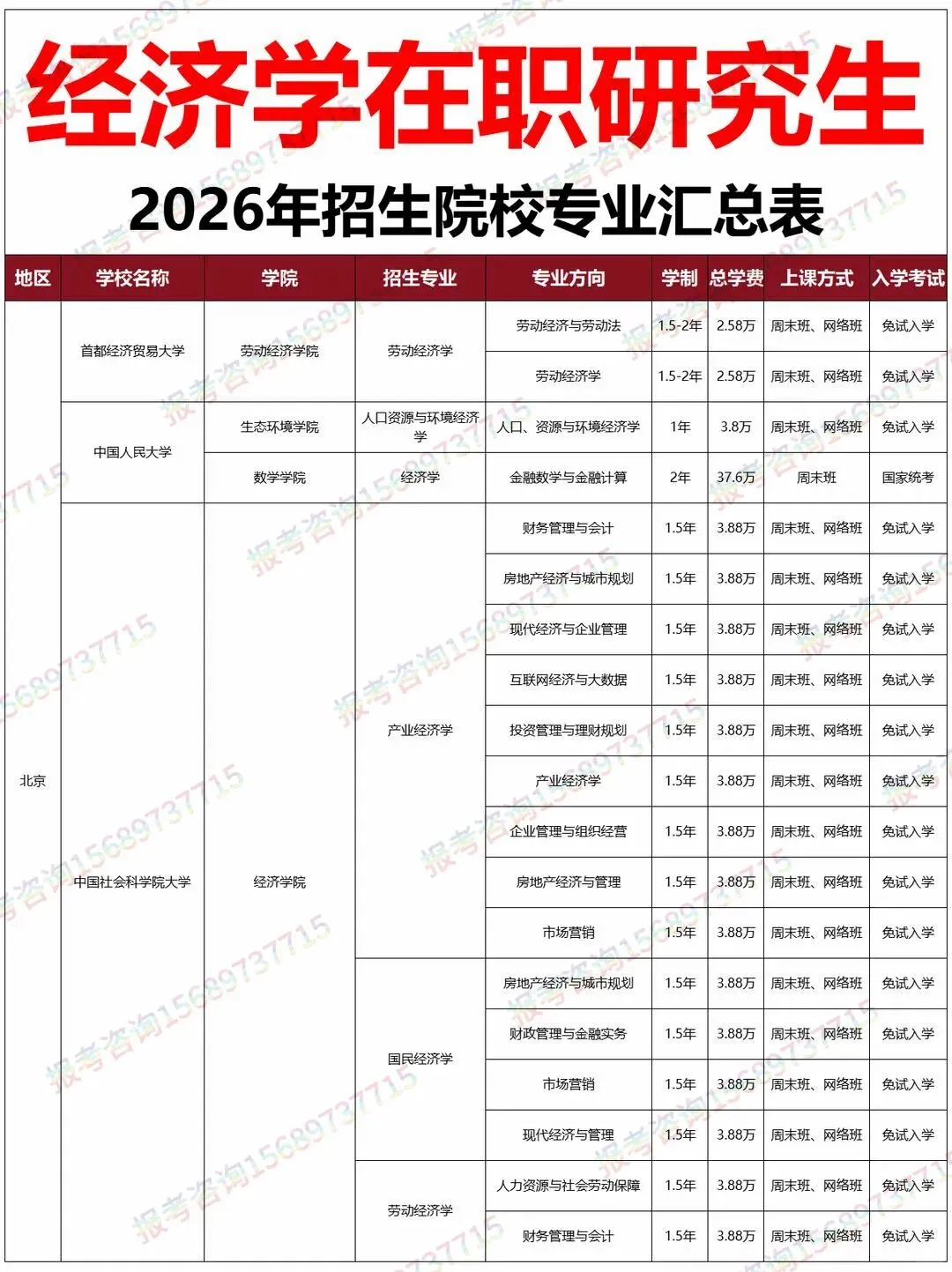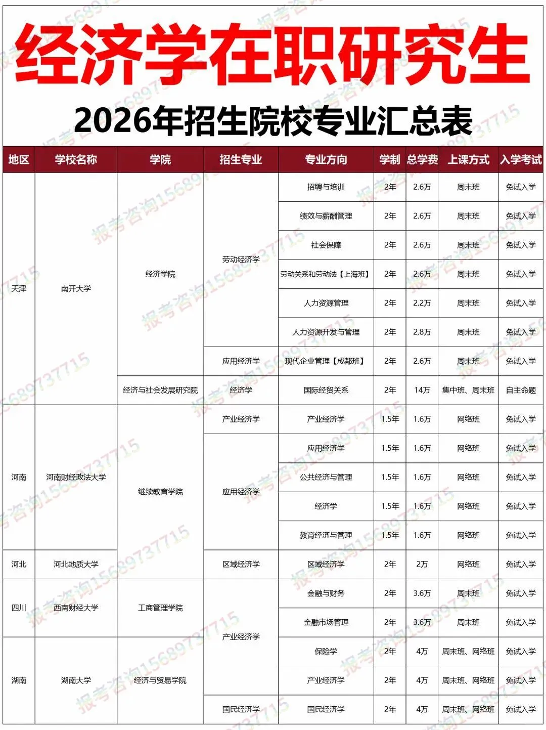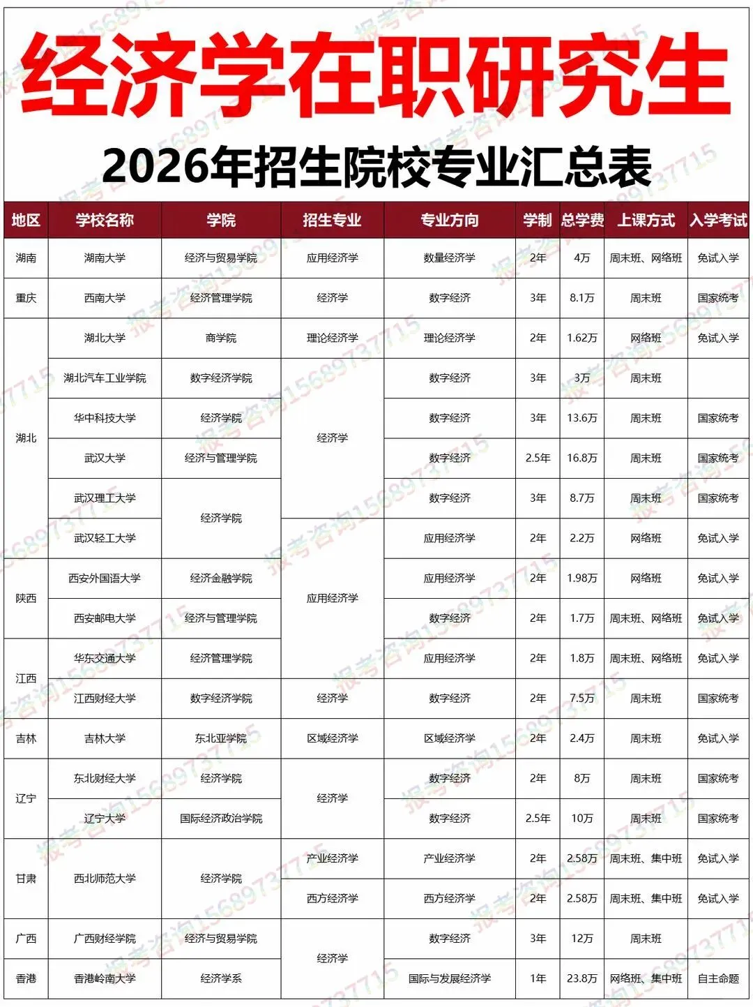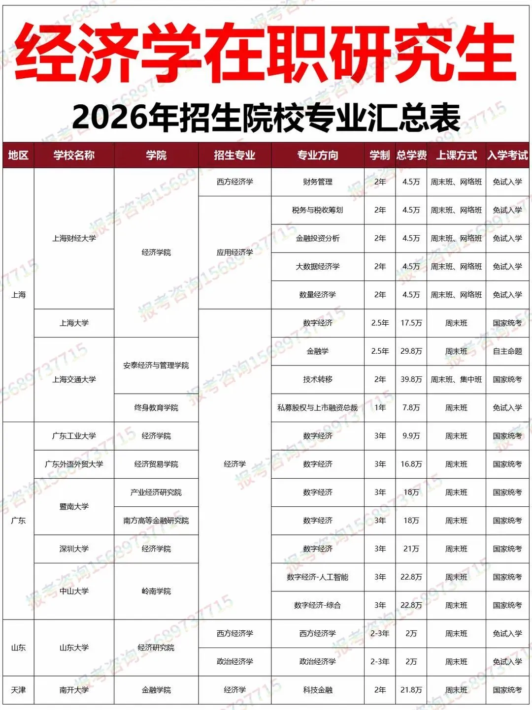 27考研:全国【经济学】非全日制研究生院校盘点(专业方向/学制/学费/上课方式)