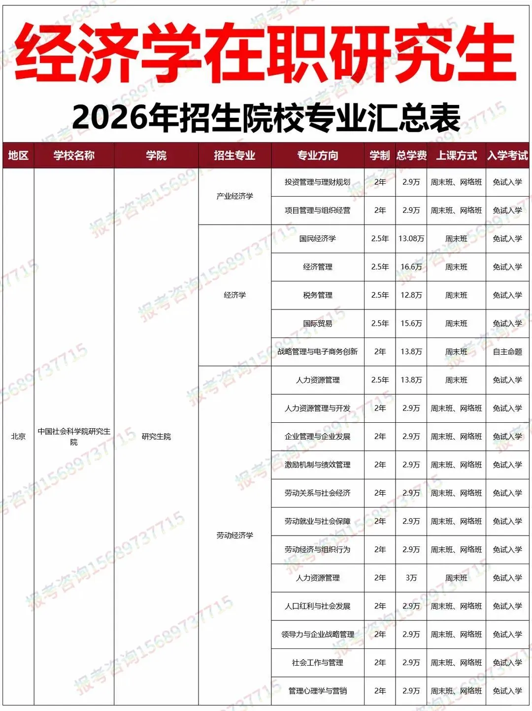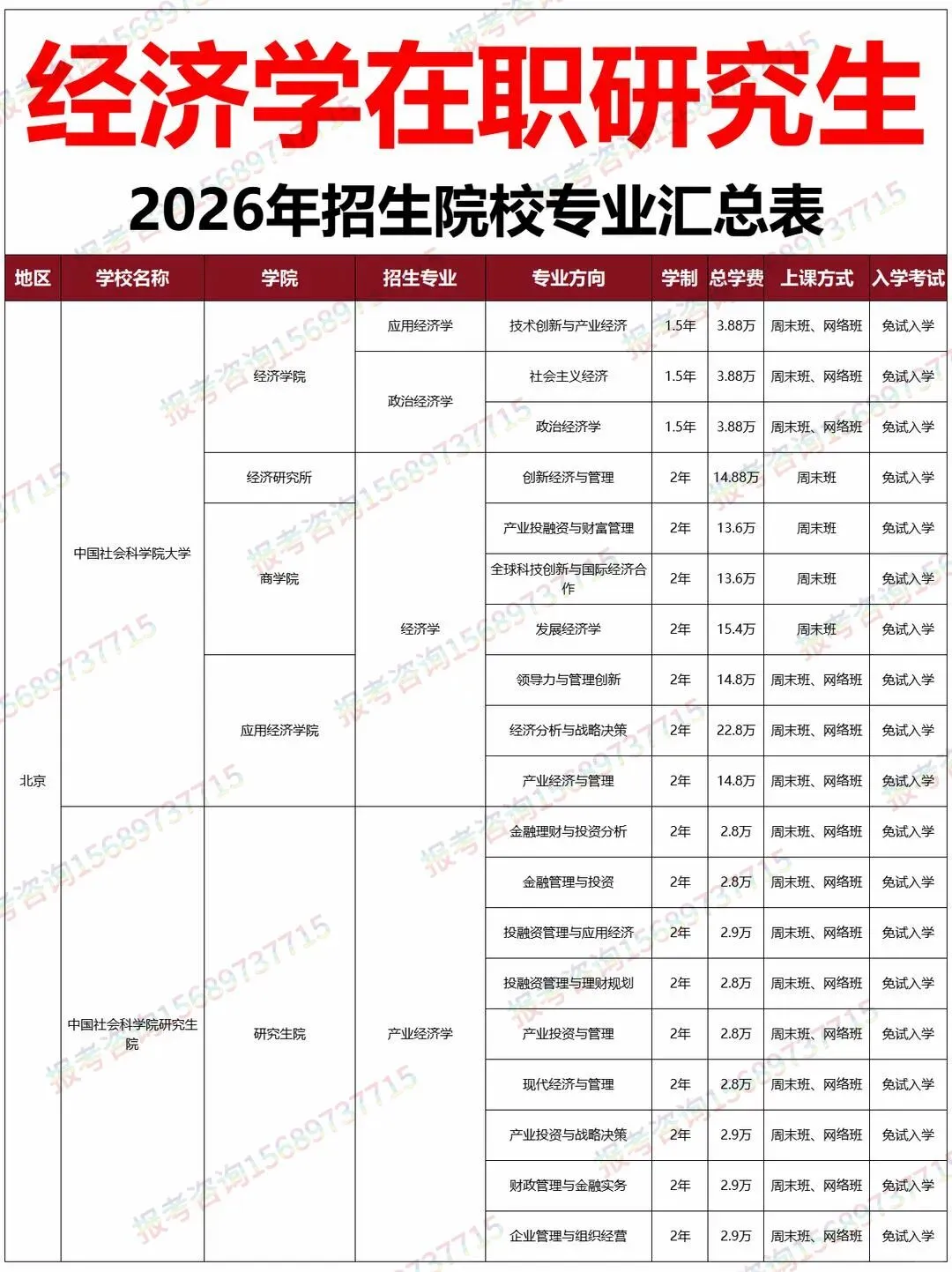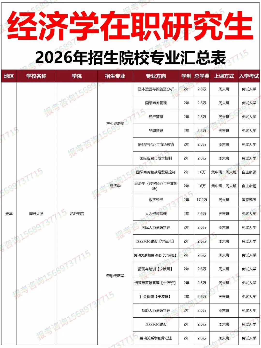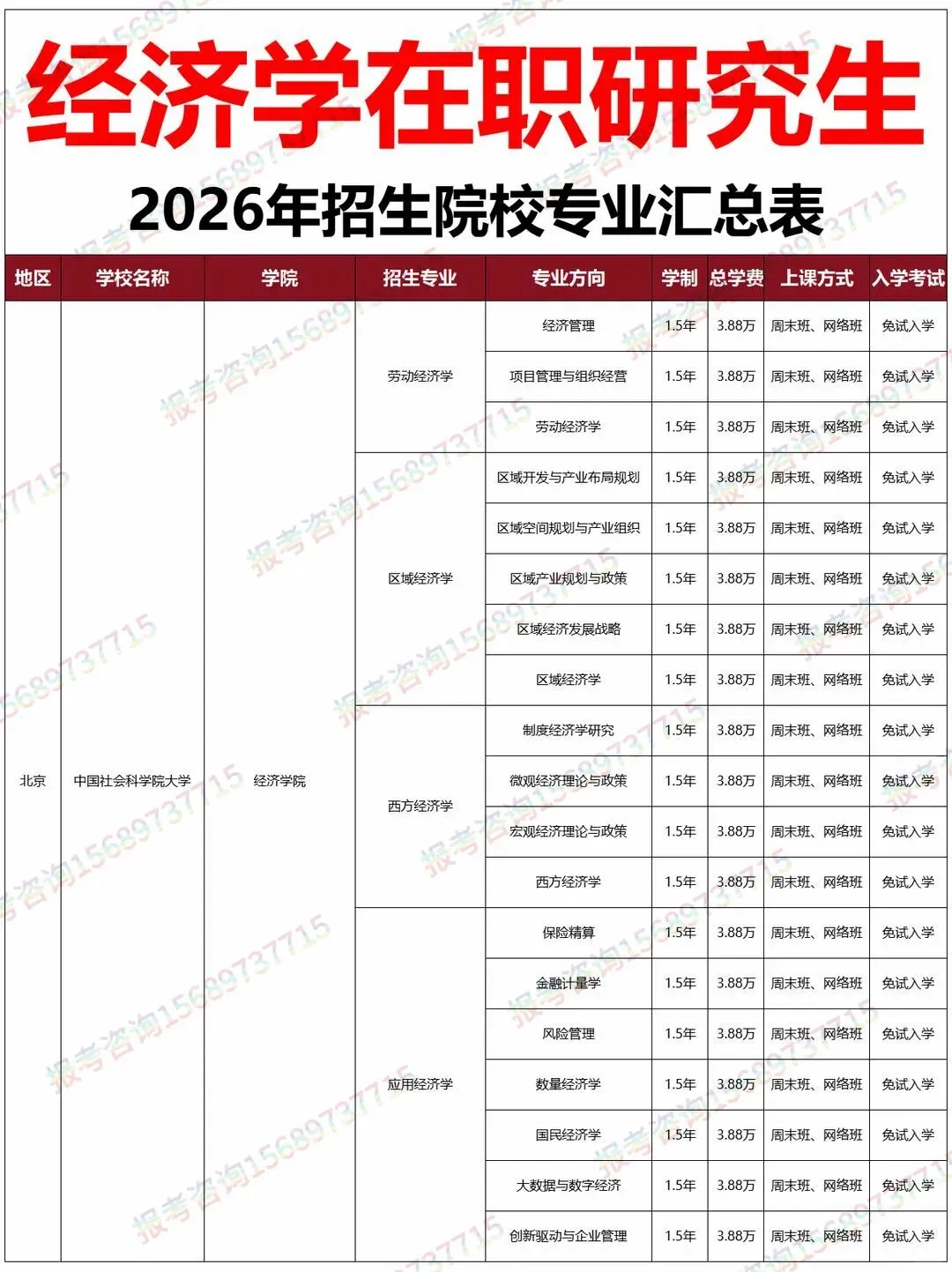 27考研:全国【经济学】非全日制研究生院校盘点(专业方向/学制/学费/上课方式)