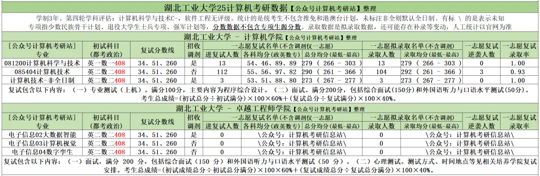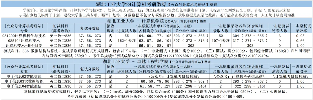 >湖北工业大学25计算机考研数据