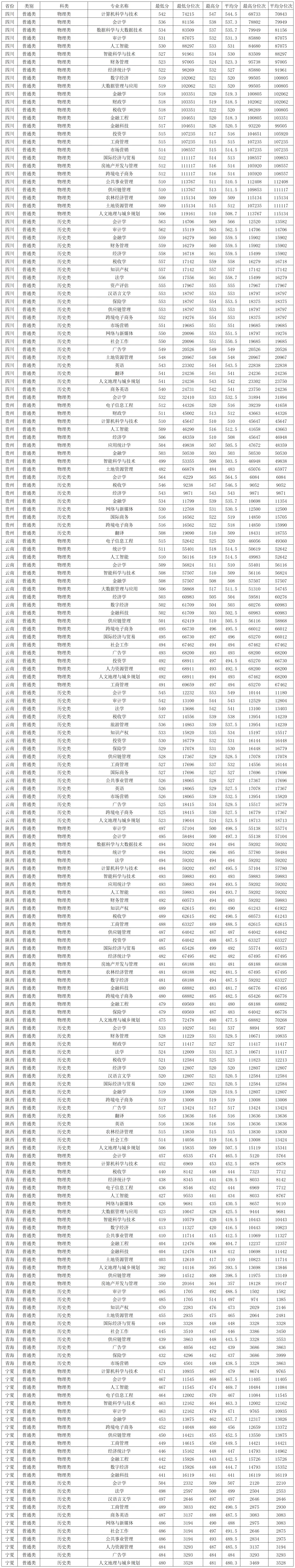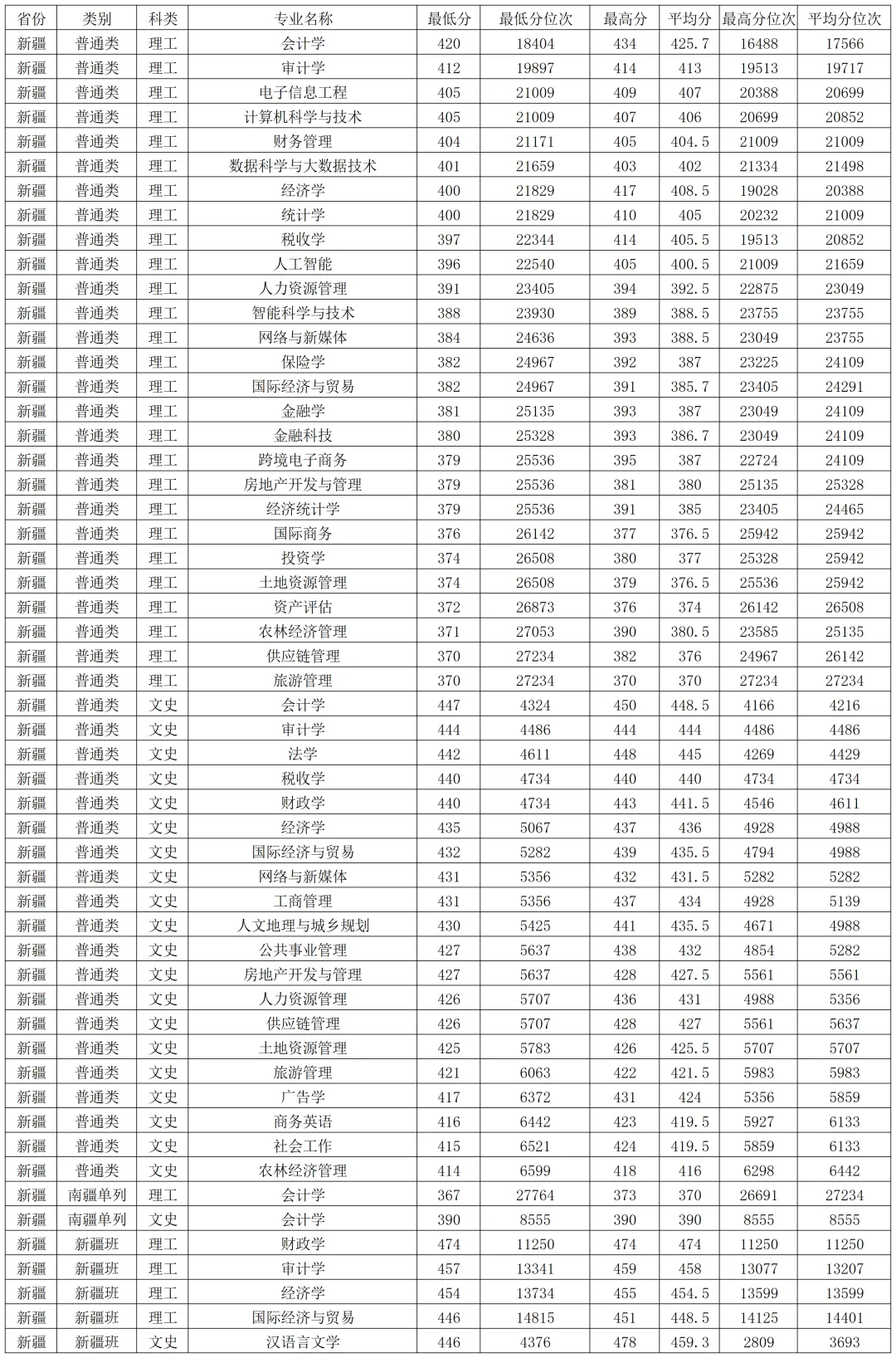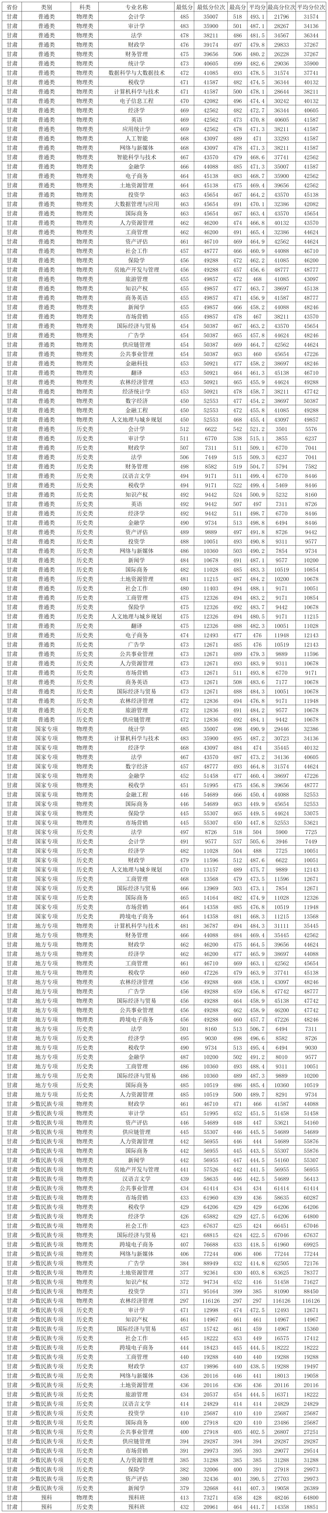 兰州财经大学2025年在新疆本科批各专业录取分数线