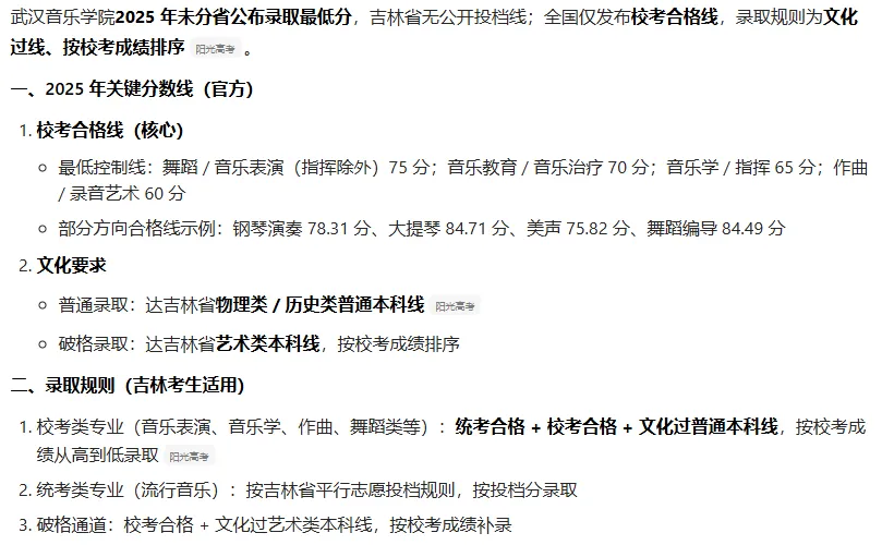 >艺术生文化课丨武汉音乐学院2025年本科录取分数线(全国)