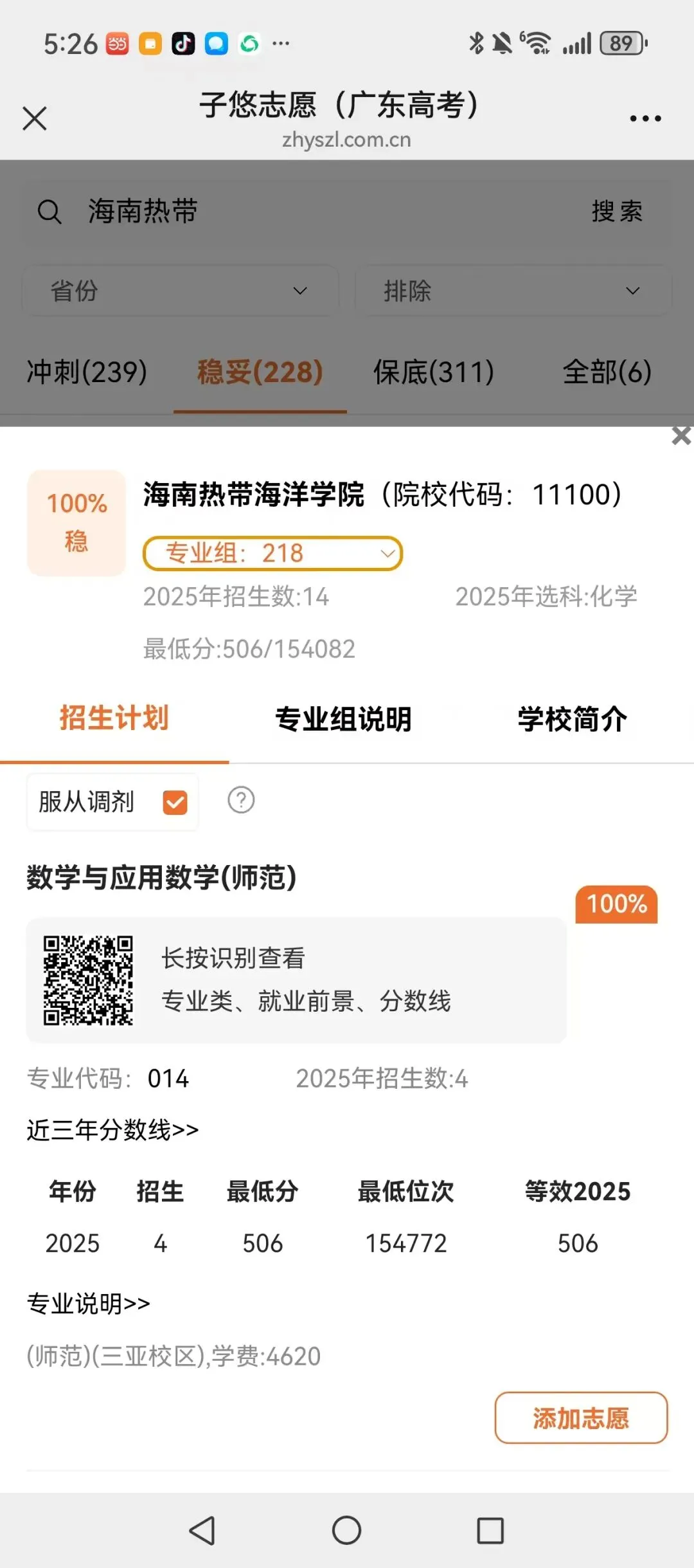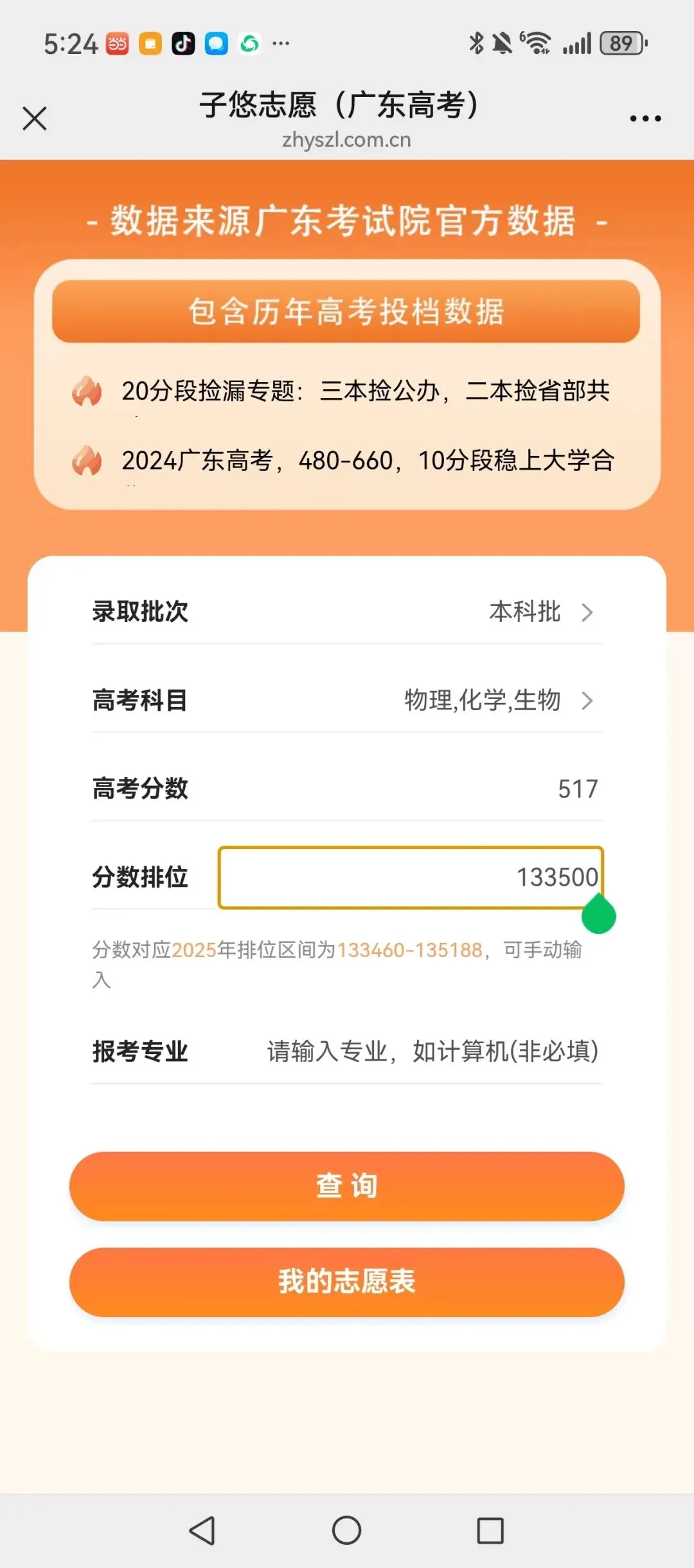 识别左侧二维码,查大学、查专业