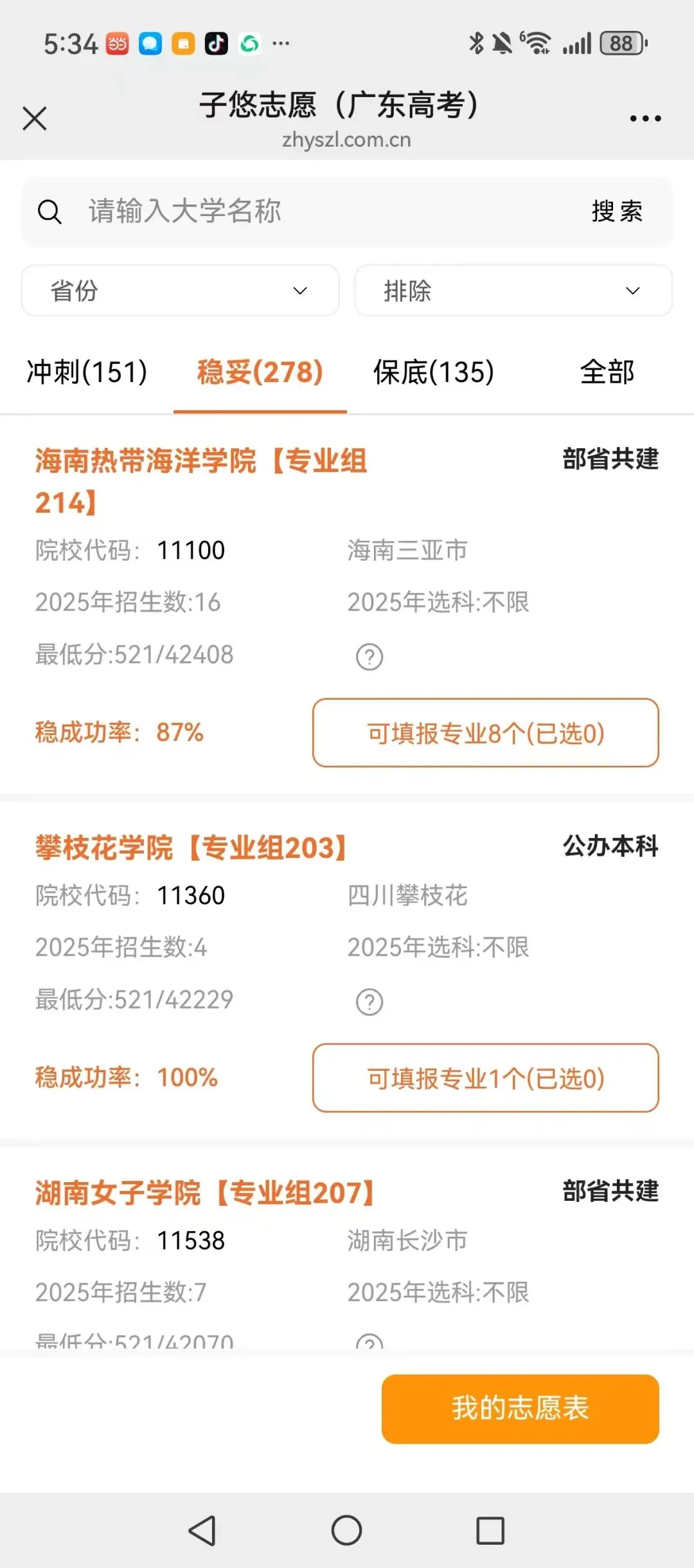 一键模拟志愿填报、稳冲保大学