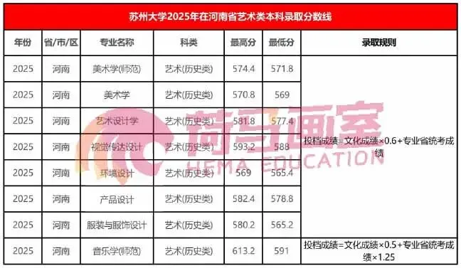 艺考资讯|苏州大学2025年河南省艺术类录取分数线