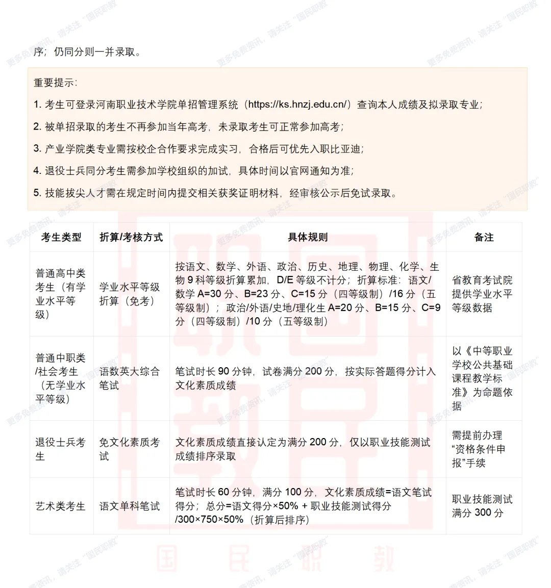 >河南职业技术学院2025年高职单招录取分数线及单招的同分排序、成绩折算与录取规则