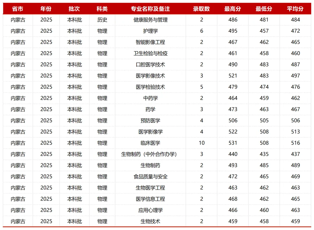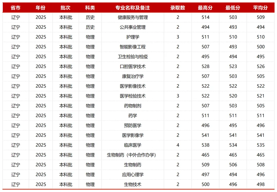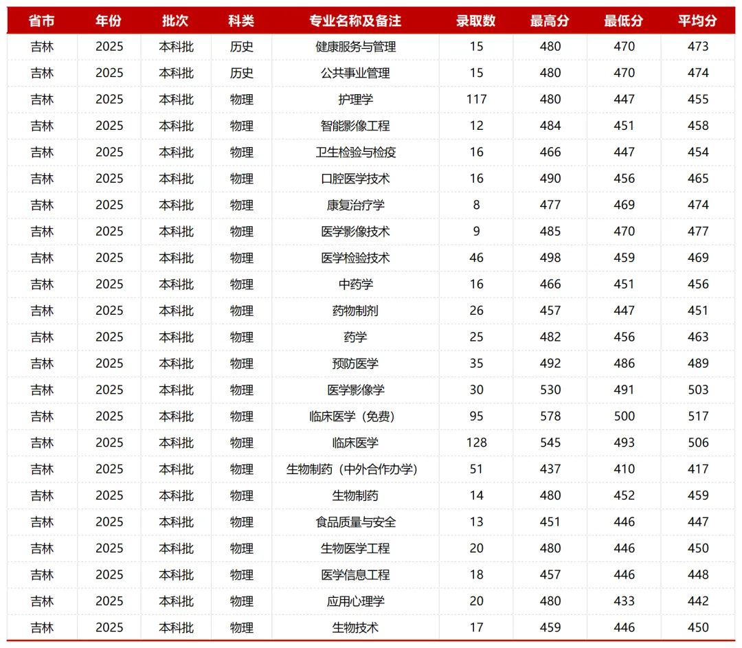 吉林医药学院2025年全国各省专业录取分数线已公布