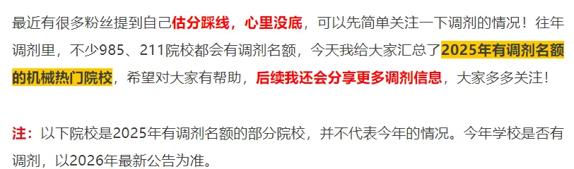 以上是机械考研25年可调剂的热门院校,调剂信息每年动态变化,三月份多紧盯目标院校官网和研招网动态,后续考研之家还会持续跟进2026复试、调剂官方公告,大家结合自身条件合理选择。提前做好准备,以备不时之需!需要考研之家帮助调剂的同学欢迎联系,我们有一手录取名额。