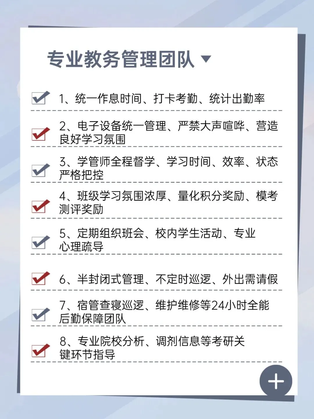 - 🏫班型:全年 / 半年 / 暑期集训、寄宿自习室、单科精讲、无忧班、一对一定制
