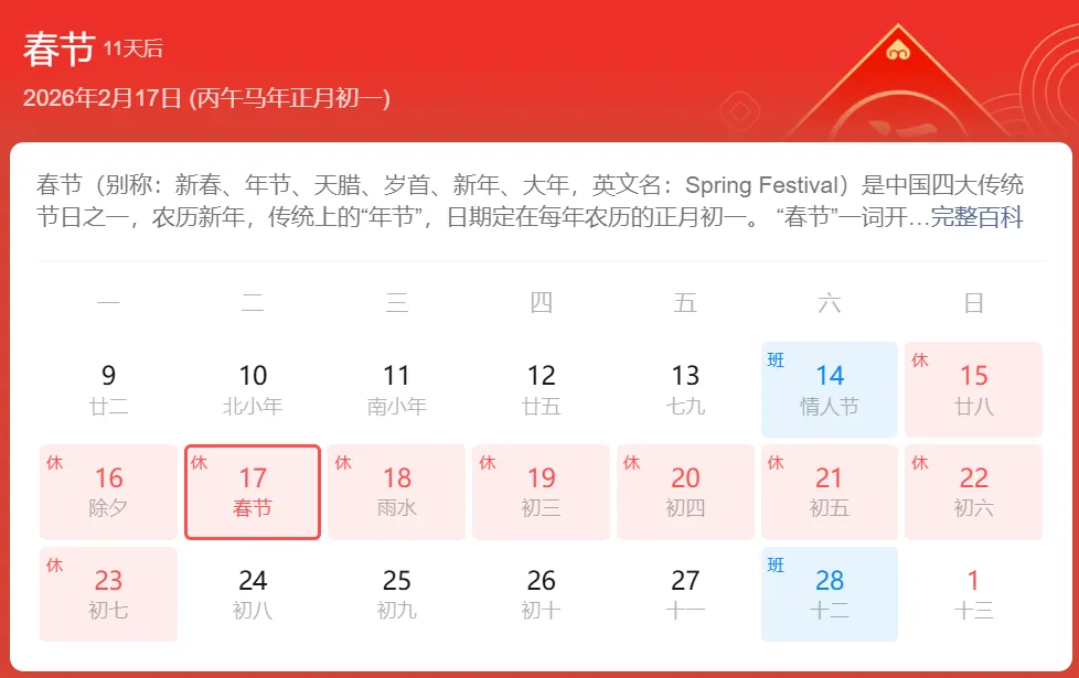 今年春节假期在2月15日-23日,是近几年最晚的春节之一。尽管春节假期有9天,但初试成绩公布时间锁定在2月下旬。