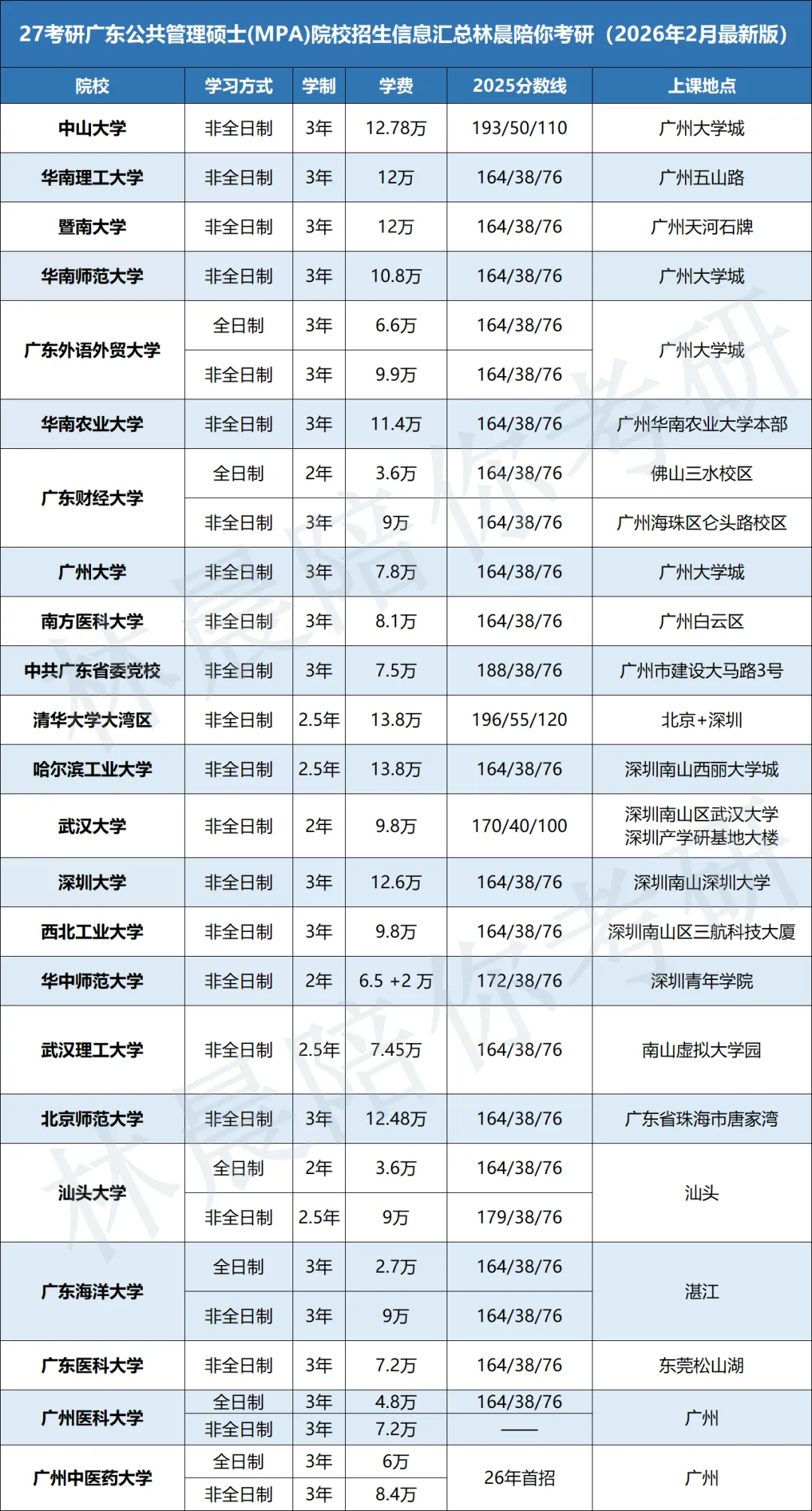 27 考研备战在即,广东地区 MPA 因其地域优势与就业前景,成为众多考生的热门选择。为方便大家快速对比择校,林晨老师整理了广东省内及大湾区教学点 MPA 院校的核心信息,帮你高效锁定目标院校,建议收藏备用!