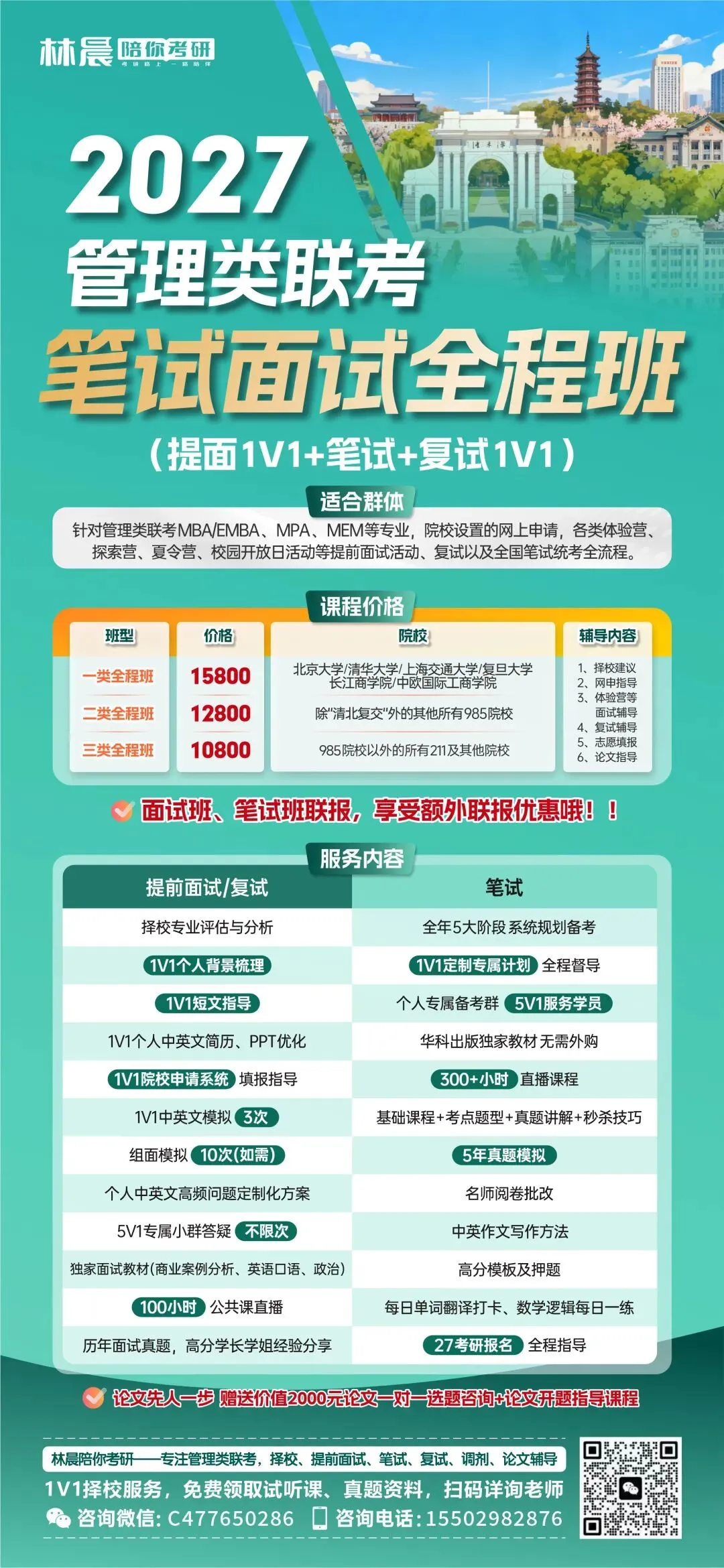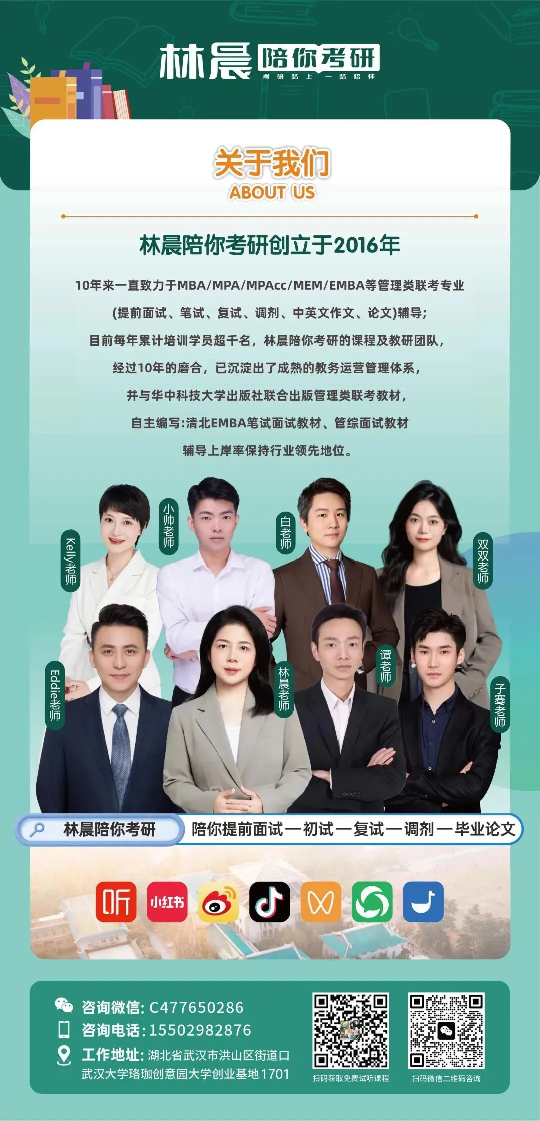 看到这里,不少同学仍纠结不知如何择校。别担心,林晨老师帮您精准定位!10年+深耕管理类硕士联考辅导,每年累计培训学员超千名,助力您 高效考研上岸!