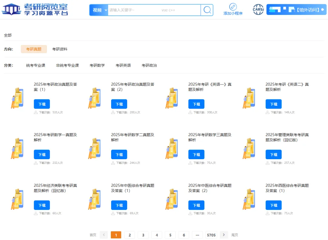 平台可以下载近10年的70000+份考研公共课和百所院校专业课真题。这些真题不仅数量庞大,而且覆盖了各个学科和院校,让你精准把握考研命题规律与趋势,明晰重点、难点知识分布,从而有的放矢地制定复习计划,大幅提升复习效率。
