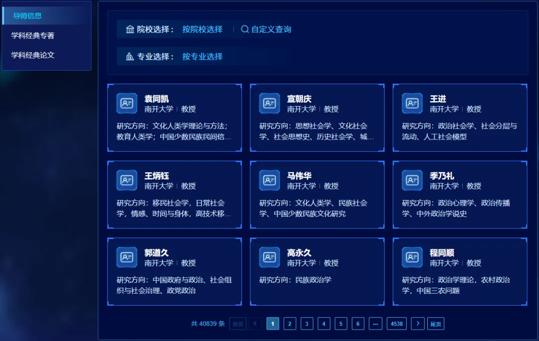 5万条教授及学术资源按院校和专业查询相关的导师资源和学术信息,报考更充分!