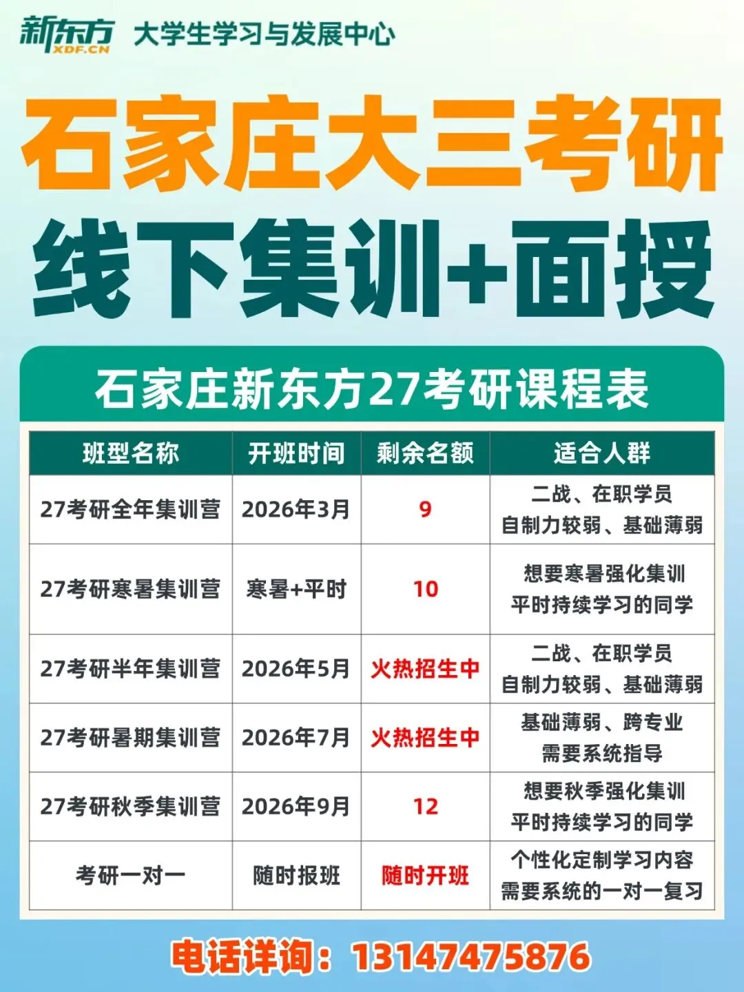 ‼️石家庄新东方强势推出『27考研全科集训营』‼️