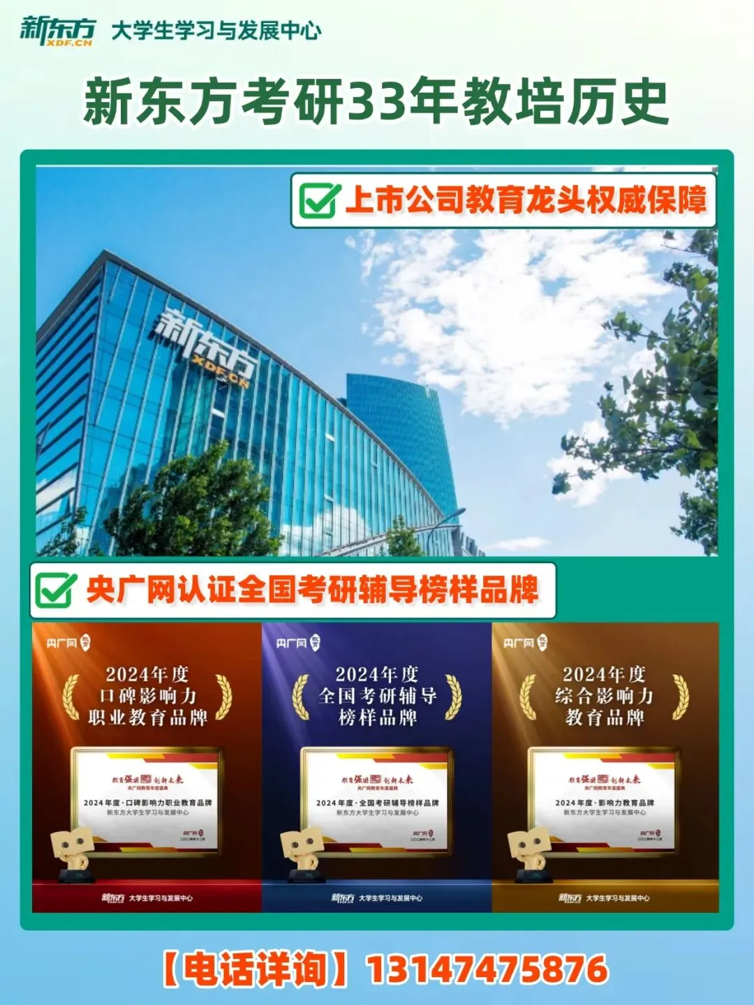 🔥目前热招课程:✅27考研:全年集训营、半年集训营、暑假集训营①干净的校区环境: 各校区均有宽敞明亮的大教室,并配备安静整洁的专属自习室、休息区、背书角。冬夏空调给劲,配套设施齐全,打好同学们学习的基本保障。②集训营住宿环境: 公寓式居住标准敞亮四到六人间,独立空调+私人储物柜+独立卫浴+WiFi通通配齐,环境舒适整洁,定期打扫卫生,提供舒适的休息环境③学习服务:四师一体,从前期择校择专业,到上课出勤、测试复盘 课后答疑,定期模考,都会有新东方老师全程跟盯!④教学服务:💕新东方全职教师全程跟班授课,100%硕博以上学历。教研赛课,每年都参加考研考试,把握考试动态,精益求精,带来高质量教学,教学经验丰富。💕同时配备有专属学管与助教老师,24小时陪伴+督学,无论是生活问题还是教学指导,都能随时找到他们,帮同学们解决问题,消除各种后顾之忧,调节疏导备考紧张情绪。💕整个集训期间,还有分阶段的测试与学习报告,及时调整学习状态与规划,加上模拟考场,全心全意助力大家上岸。🉑提供1v1择校择专业➕试听➕校区参观!