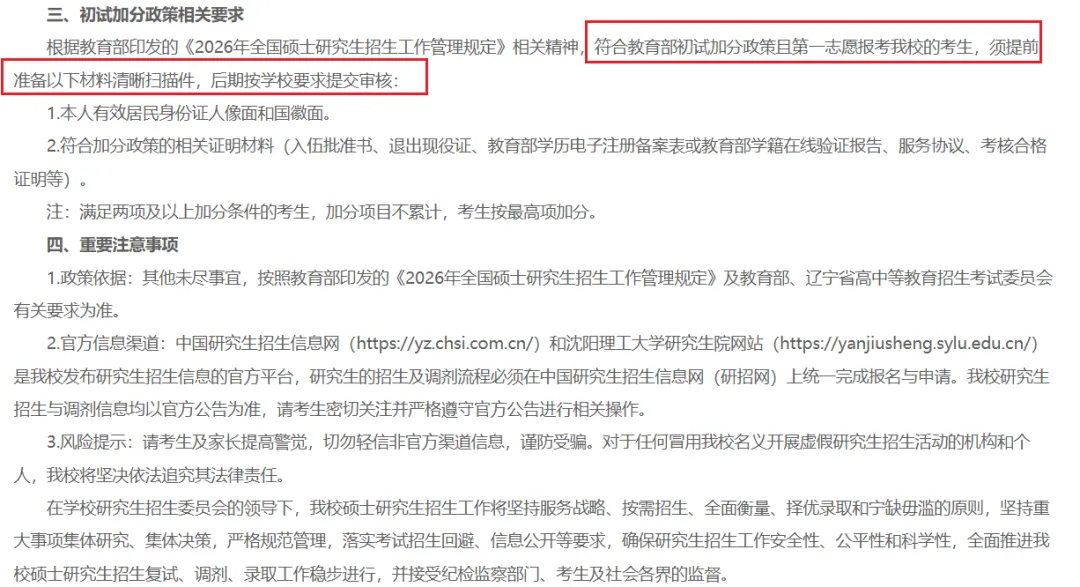 另外,符合教育部初试加分政策且第一志愿报考我校的考生,须提前准备相关材料清晰扫描件,后期按学校要求提交审核。