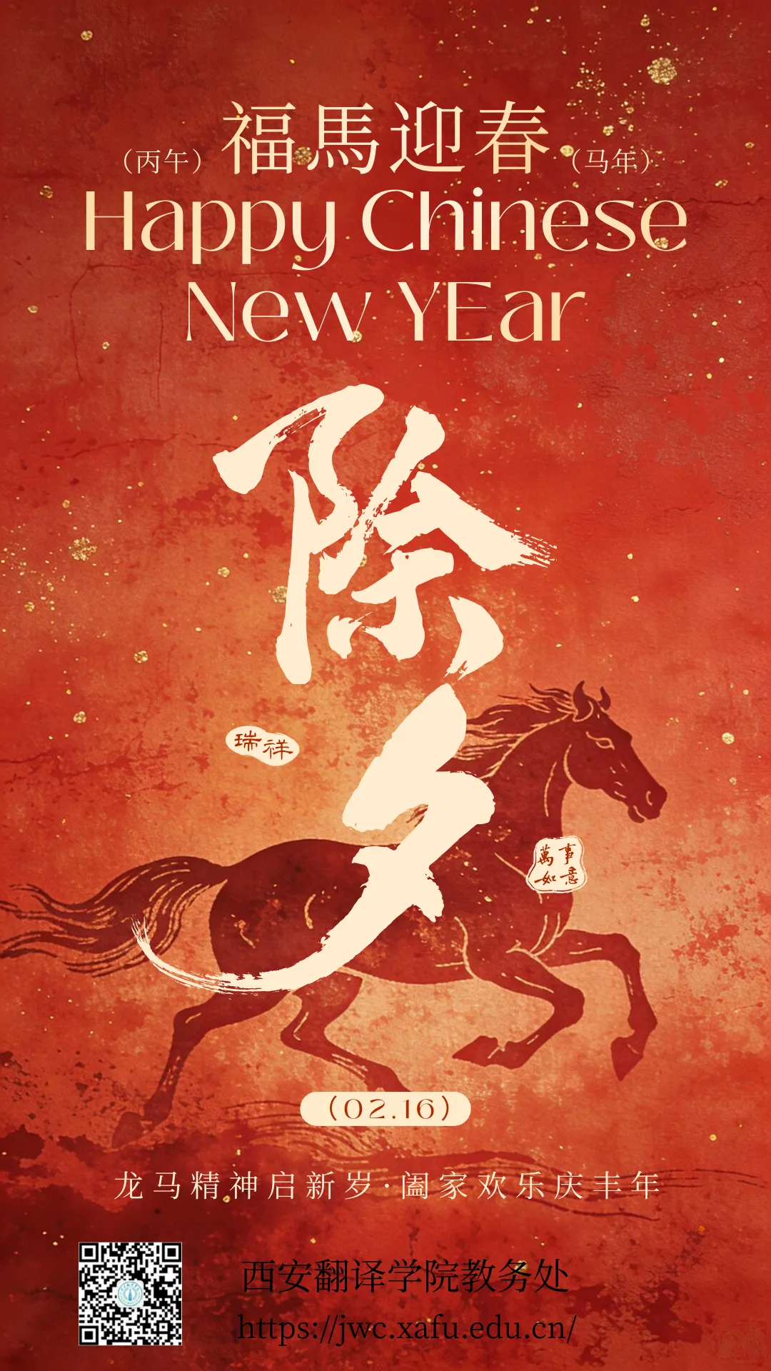 >瑞马呈祥|西安翻译学院教务处恭祝全体师生金马纳福,喜乐安康