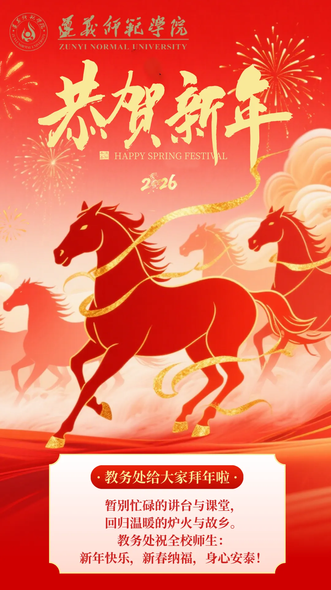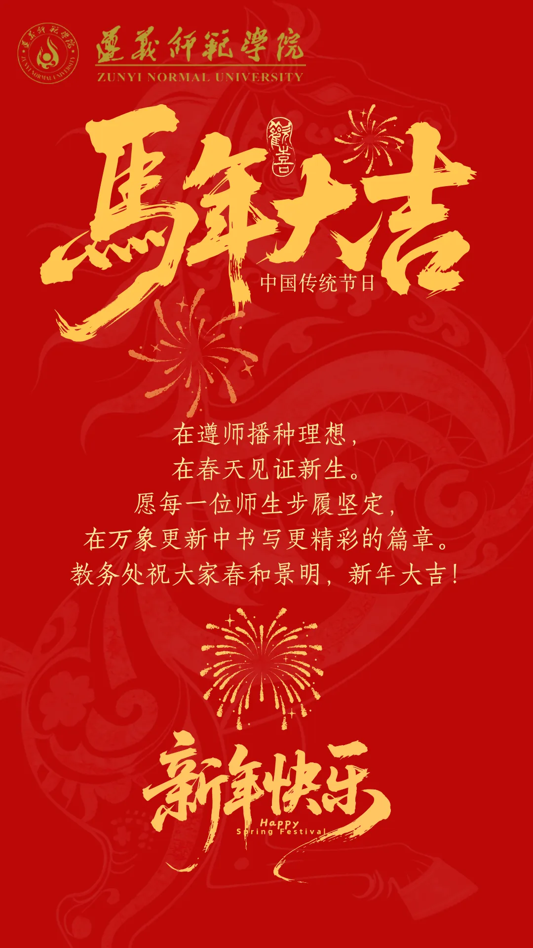 岁序更迭,万象更新,遵义师范学院教务处祝全体师生马年大吉!