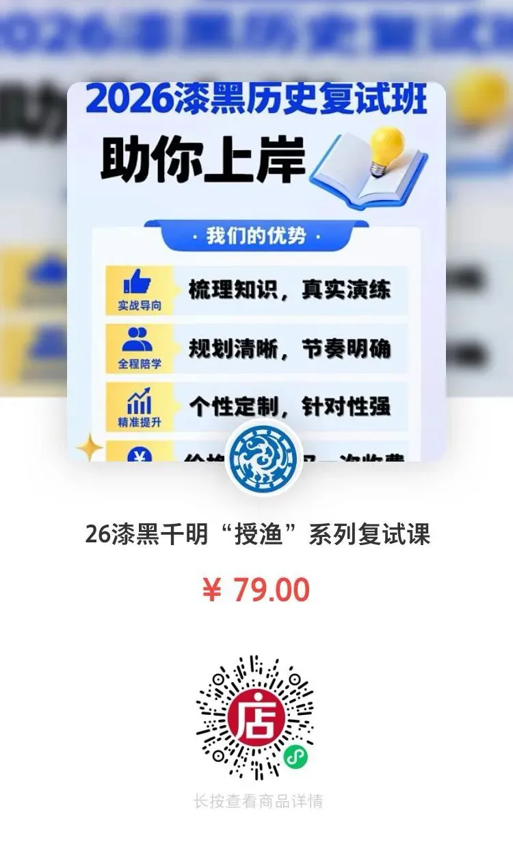 与目前市面上复试辅导上专注于搬运僵硬格式化的复试答案不同,本课程将致力于以具有通俗化语言让学生首先明白复试的底层原理。我们拒绝“答案流水线”,只做历史思维的摆渡人:学生会获得复试的全盘性把握,而不是局限于钻牛角尖、堆砌辞藻。把复试当作一次与自己与历史学“对话”、与学者闲适交流的契机。我们要杀死“必背题库”暴政,焚烧三类无效资料:脱离具体院校学术传统的万能模板;堆砌学术黑话的假性深度答案;割裂史学脉络的知识碎片。我们拒绝强加给个人堆积如山的复试资料。而是紧密结合一流的历史作品,使用诸如阎步克、邓小南及孔飞力等欧美及国内一流史学家的文章,讲解透彻史学思维及历史表达方式,综合提高学生的史学素养。