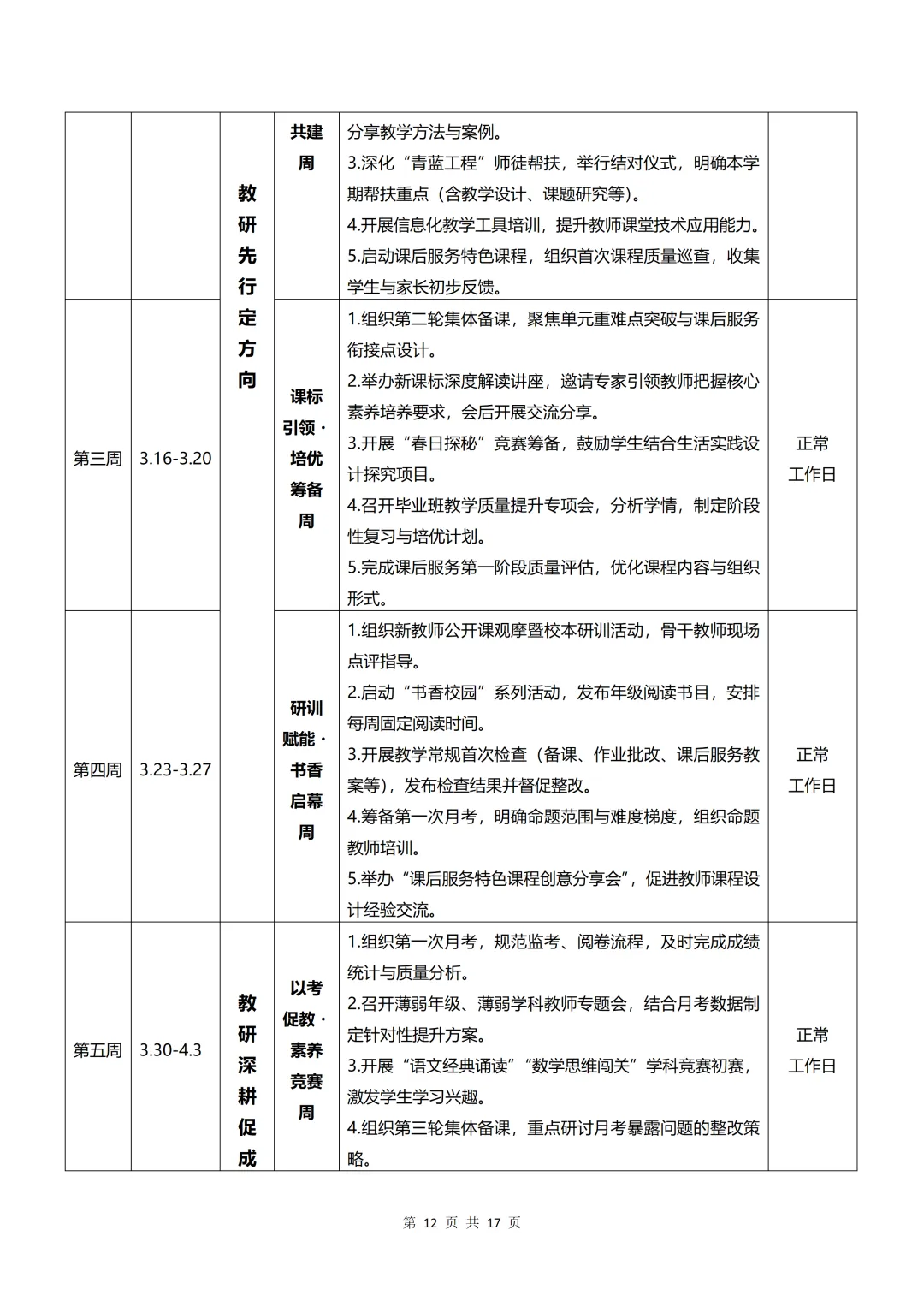 4.规范教学检测:科学组织月考、期中调研、期末检测等教学评价活动,严格考务流程,做好成绩统计与质量分析,针对薄弱年级、薄弱学科召开专题分析会,制定个性化提升方案,实现“以考促教、以评提质”。