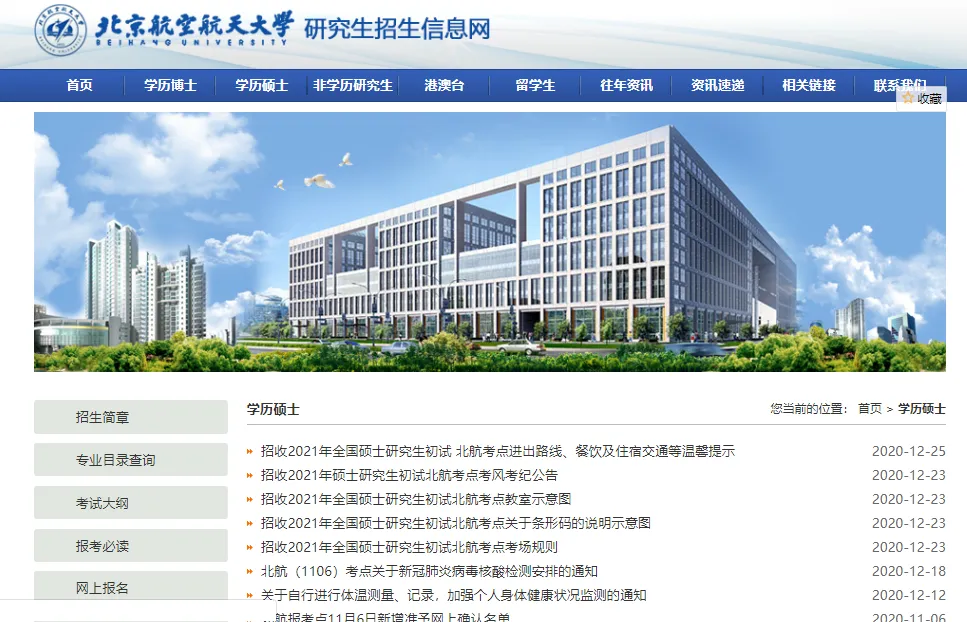 北京航空航天大学关于招收研究生的所有通知都会放在这个网站上,像招生简章、报名、录取情况、调剂信息等都会在这个网站上通知。