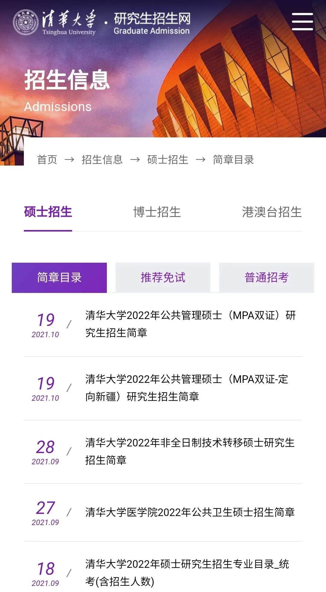 清华大学关于招收研究生的所有通知都会放在这个网站上,像招生简章、报名、录取情况、调剂信息等都会在这个网站上通知。