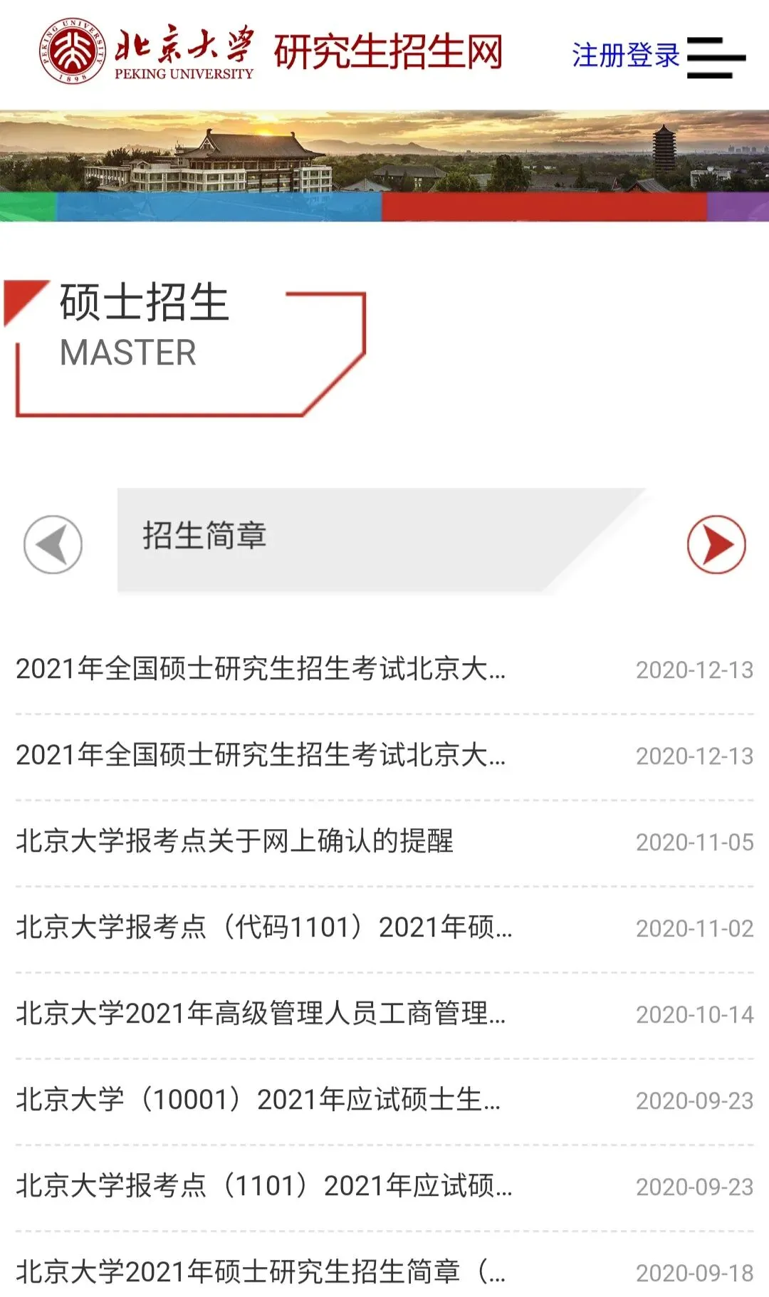 北京大学关于招收研究生的所有通知都会放在这个网站上,像招生简章、报名、录取情况、调剂信息等都会在这个网站上通知。