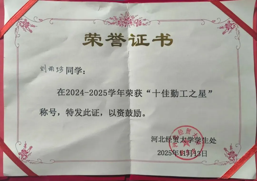 勤工之路亦是成长之路。刘雨珍以自信为帆、自行为桨、自省为舵,在勤工实践中锤炼坚韧品格、收获责任担当。未来,她将带着这份实干力量继续前行,既走好自己的奋进之路,更以自身行动为榜样,为更多勤工学子传递正能量!