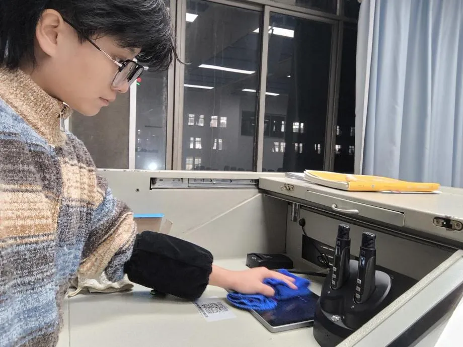 对于刘雨珍来说,媒体设备维护与教室整理从不是简单的清洁琐事,而是教学保障里的关键一环。教室是老师授课和同学汲取知识的核心场域,多媒体设备更是课堂高效运转的“纽带”。干净整洁的教室不仅能让教学节奏更顺畅,更能让师生在舒适的环境里提升学习与授课的状态。这份工作看似平凡,却至关重要,它既保障了每一堂课的设备正常运行,也维护着教学空间的整洁形象,更藏着对师生学习生活的细致关照。同时,刘雨珍也认识到,任何岗位都有其独特价值,哪怕是擦拭设备、归置物品这些细节,认真去做,就是对师生需求的回应,也是对自己责任心的打磨。