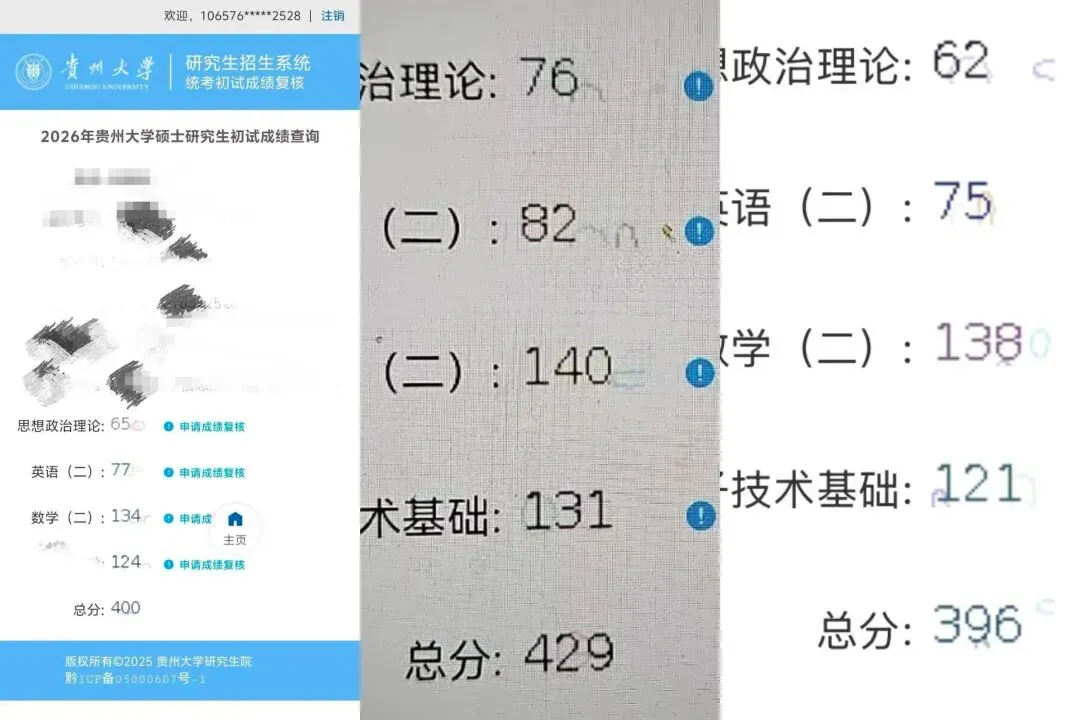 每年正式成绩公布前,总会有同学卡到学校测试系统的时间,提前查到成绩,今年也不例外,小红书上有人(贵州大学)已经查到了成绩。