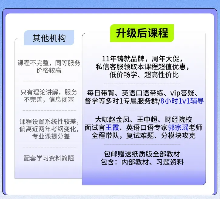 我们的26管综复试VIP可退费课程,就是为解决这些痛点而生: