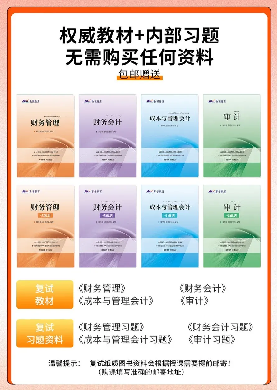 课程包邮赠送教材+内部习题:我们汇集整理了全国各大院校的历年考题和内部题库,将高频考题进行提炼汇编成册,通过系统教学+高频题库强化,帮助大家理清脉络、强化记忆、扫清疑惑,实现一本通,考点明!