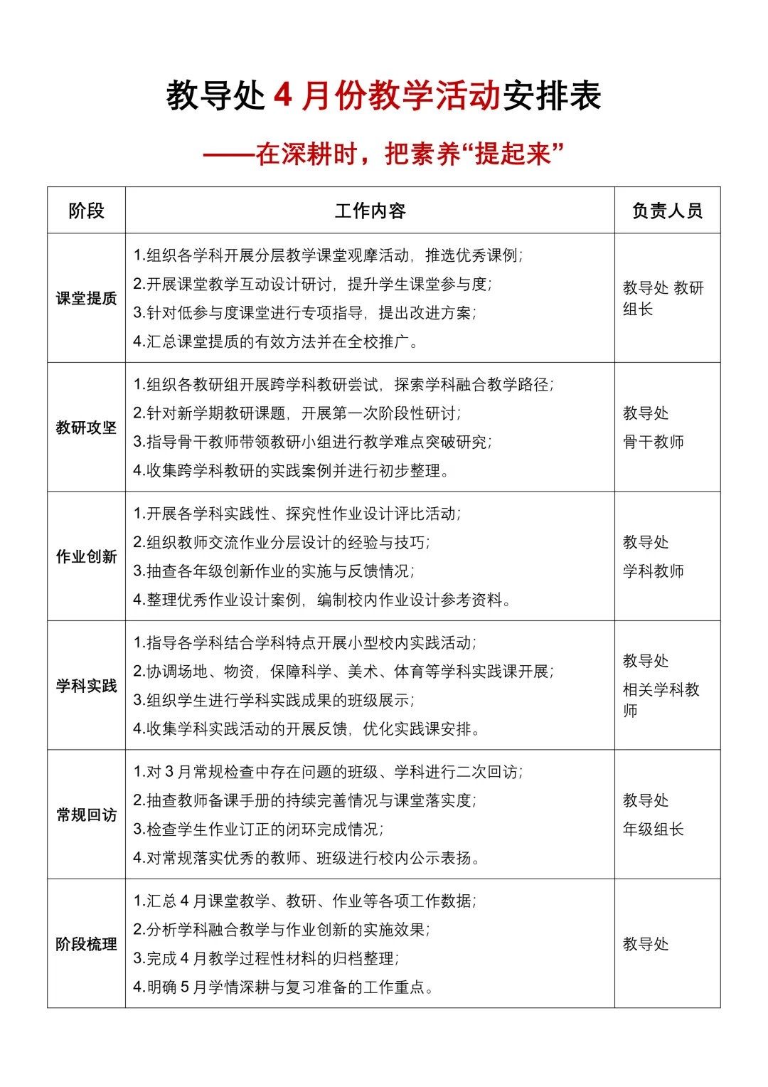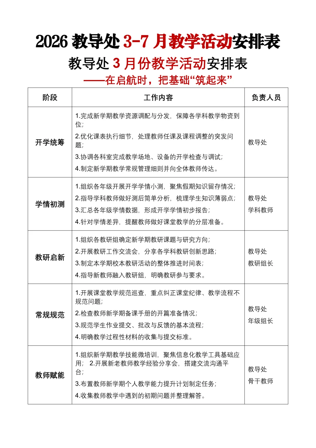 2025-2026学年第二学期初中教务处工作计划+每周工作安排表——精研教学强根基,深耕课堂育桃李