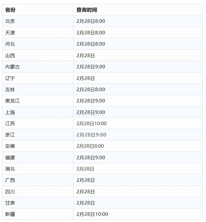 26考研各省出分时间如下图: