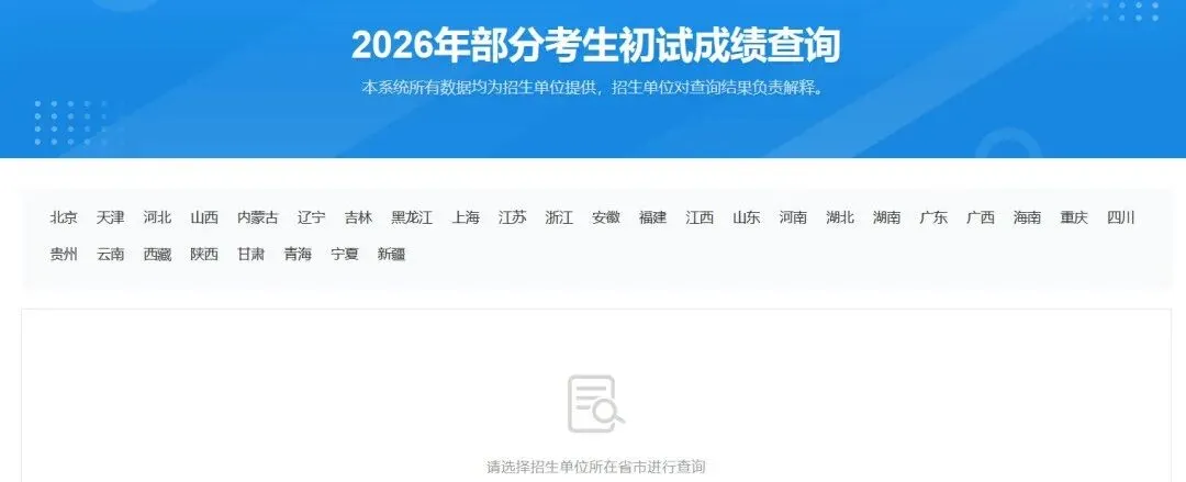 https://yz.chsi.com.cn/apply/cjcx/研招网会有考研成绩查询入口。姓名、证件号码必填,准考证号和报考单位至少填一项。所以,准考证丢失的同学也不必担心,到时候填写报考单位,也可以查到初试的分数!注意,不是所有的院校都能在研招网查询,只有在研招网上传分数的院校可以查。所以在研招网查不到分数的同学不要慌张,按照所报院校规定的查询方法即可。省教育部招生相关网站也可以查询到研究生初试成绩的!网站名一般为 XX 省考试院或招生信息网,不同地区叫法稍微有点差异。只需要输入大家的准考证号和身份证号就可以查询到!