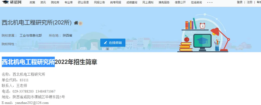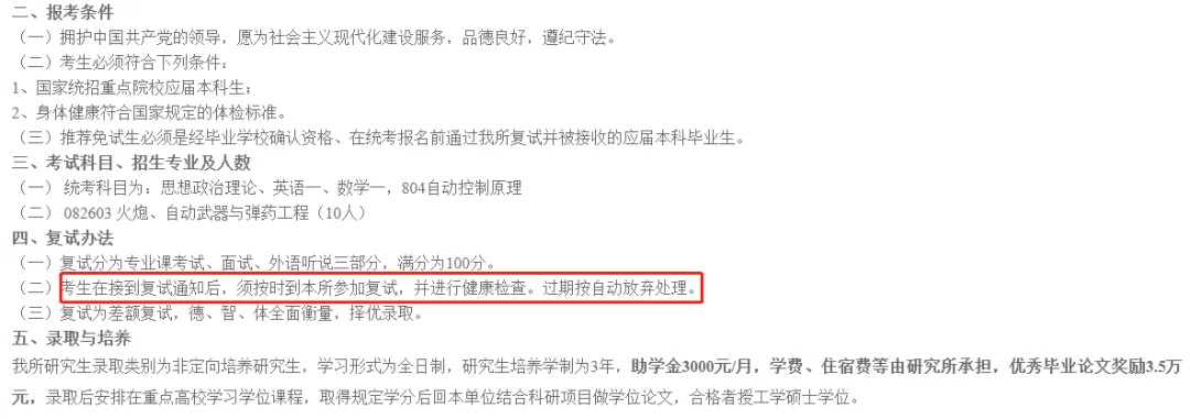 3月4日,研招网发布的《西北机电工程研究所2022年招生简章》中提到:考生在接到复试通知后,须按时到本所参加复试,并进行健康检查。过期按自动放弃处理。