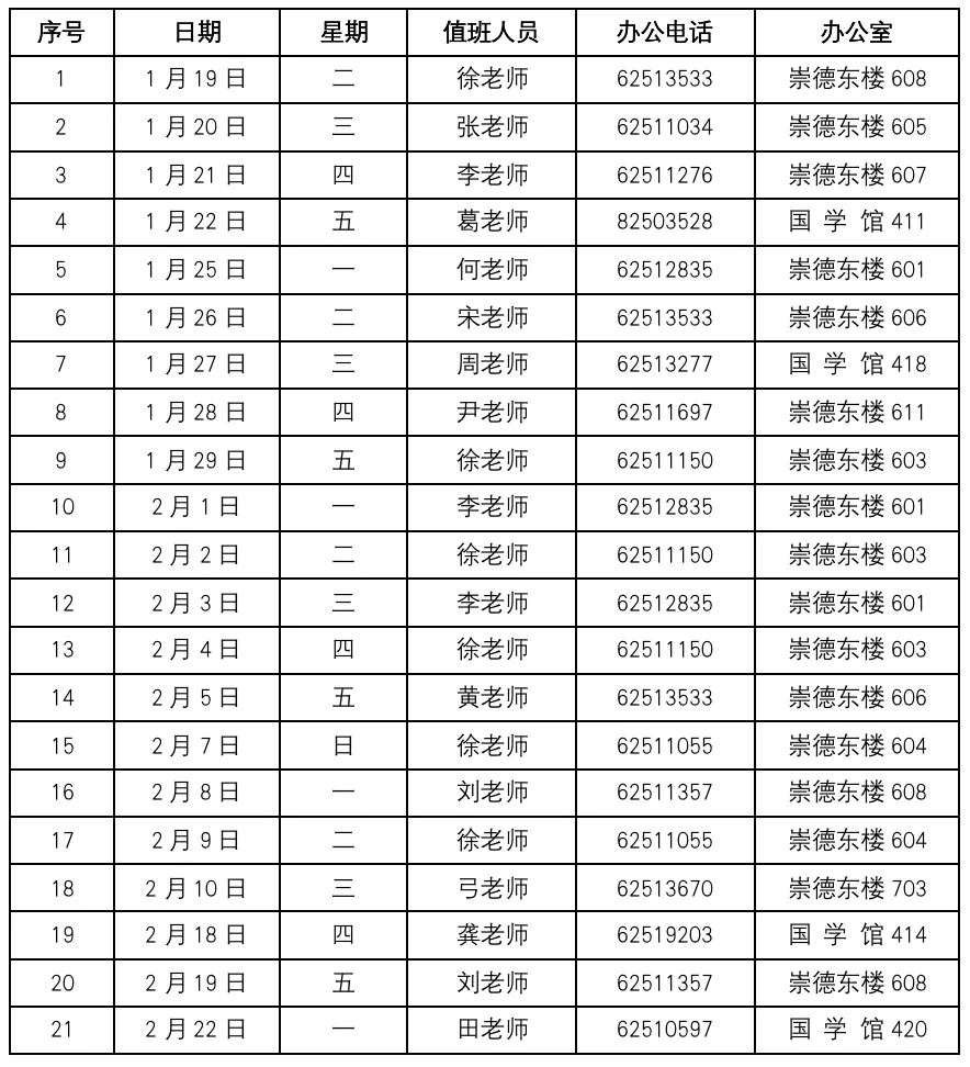 教务处2021年寒假值班安排