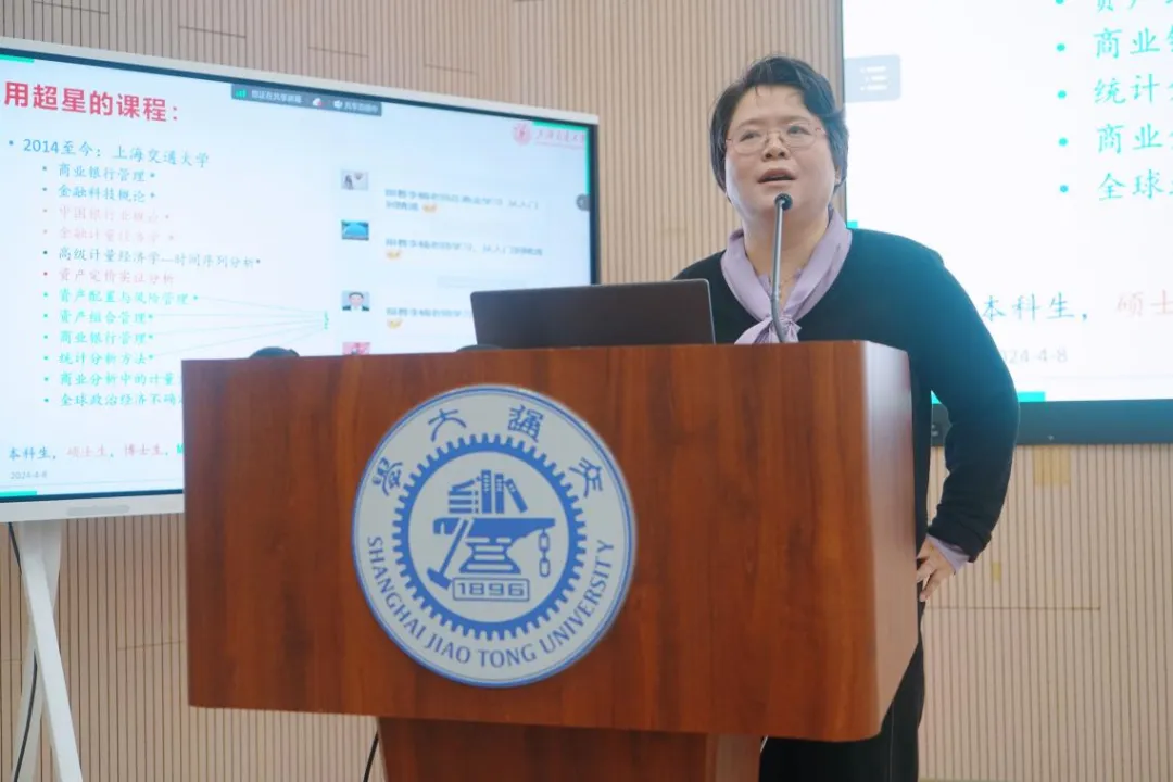李楠以《计量经济学》为例,向大家分享了如何在课堂中利用ChatGPT、超星学习通等平台,通过线上线下融合的方式提高课程教学效率。她提出可以将知识图谱转变成训练学生总结课程知识点的利器,激发学生主动思考。