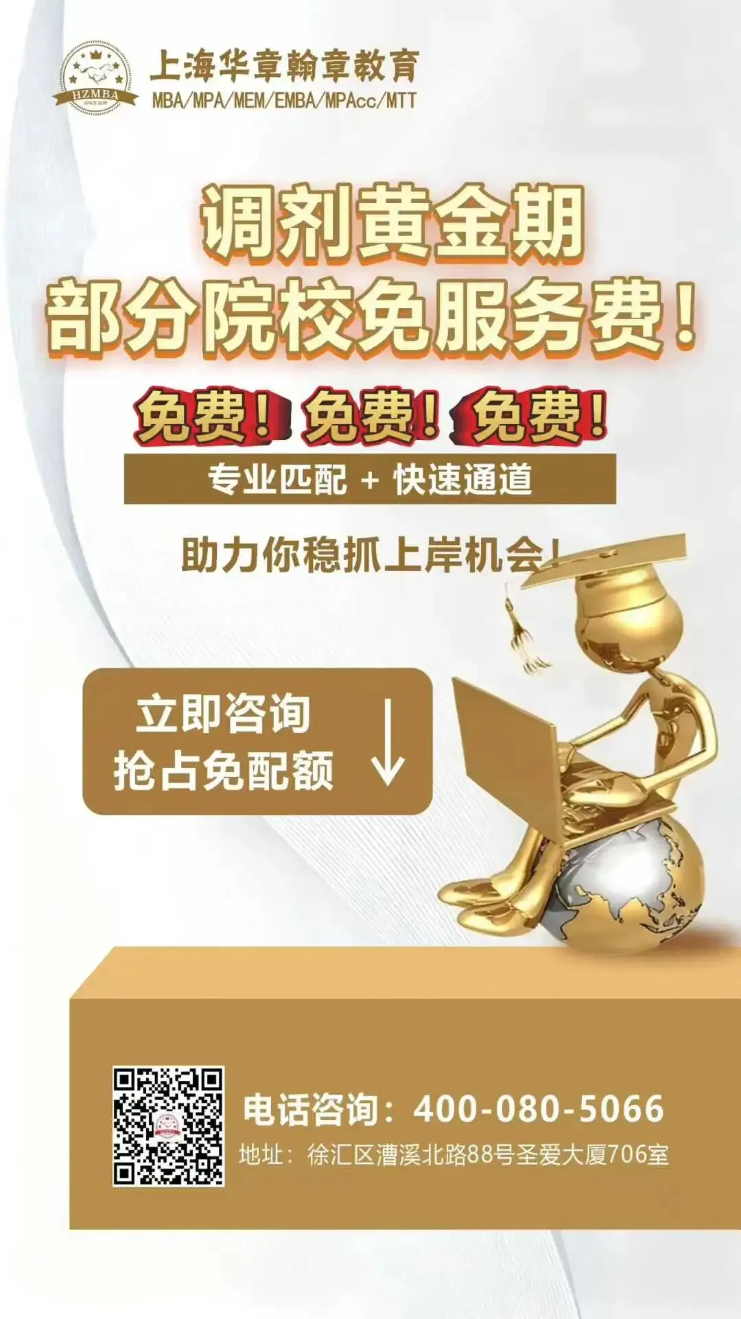 👉 关注公众号回复“调剂+专业+分数”,比如“调剂+MBA+175”,或拨打400-080-5066。我们的专业老师会尽快联系你,帮你免费评估。