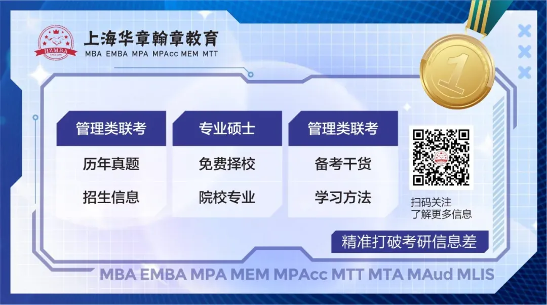 上海华章翰章教育专注管理类联考(EMBA / MBA / MPA / MTT / MEM / MTA / MPAcc / MAud / MLIS)考前辅导24年!多年来,为众多知名院校培养出数以万计的学员!培养出众多院校的笔试状元与面试状元!上海华章翰章教育秉承全程名师授课宗旨,打造出管理类联考考前辅导“名师梦之队”、“名师团队”、“现任面试官团队”,上海华章翰章教育所有在职授课老师,均为高等教育出版社、机械工业出版社、清华出版社、交大出版社等辅导教材主编!上海华章翰章始终秉持一个教育理念——不仅通过联考,更要终生受益!