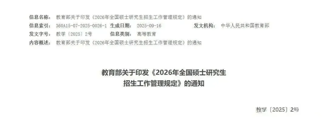 《2026年硕士研究生招生工作管理规定》